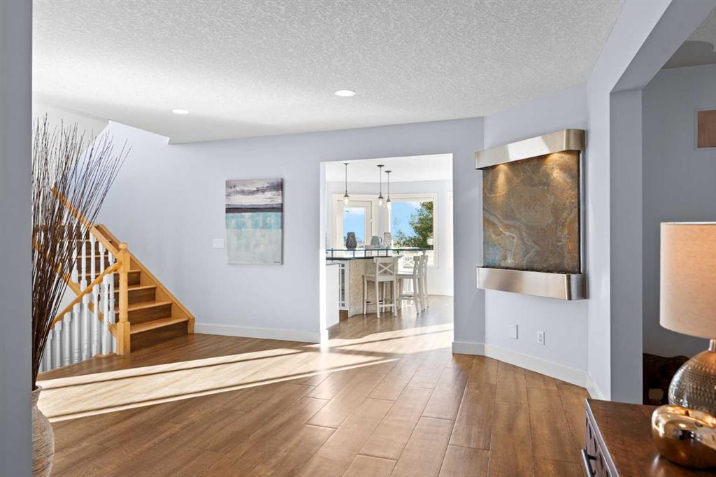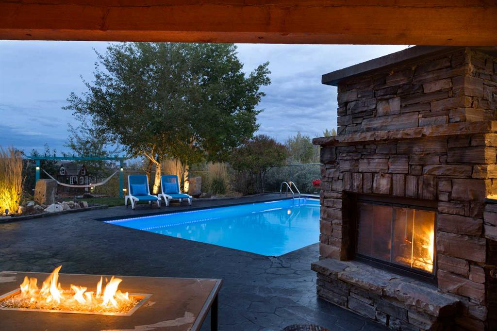Nestled among the rolling hills of Patterson, this stunning 5-bedroom, 3.5 bath executive home combines elegant design, smart technology, and resort-style amenities—perfect for the modern family. As you enter the grand foyer, you’re greeted by a tranquil spa-inspired water feature, setting the tone for the sophistication that follows. The main living area boasts soaring 17’ ceilings, a cozy gas fireplace, and vinyl plank flooring throughout, creating an airy and inviting atmosphere. The gourmet kitchen is a chef’s dream, featuring granite countertops, a large entertaining island, built-in fridge, and gas range. Step outside to the massive deck, fully updated in 2024, where you can take in sweeping views of Calgary’s skyline. Adding to the functionality of the main floor are a formal dining room, front sitting room/office, and laundry/ mud room area – that leads into the attached oversized double garage. Upstairs, the primary suite offers true luxury—complete with a private balcony, a gorgeous ensuite featuring a Jacuzzi tub, heated floors, double vanity, stand-up shower as well as a generous walk-in closet. Two additional bedrooms, a loft area ideal for a home office, and another full bathroom with heated floors complete the upper floor. The fully finished walkout basement is an entertainer’s dream, featuring a second gas fireplace, two more bedrooms, a full bathroom, and even a kitchen area for hosting epic movie nights or game days with friends and family. The newly built flex/workout room includes rubber flooring and is pre-wired for a hot tub. Step outside to your own backyard paradise—a professionally landscaped oasis designed by an architect, featuring a 16’x33’ heated in-ground pool surrounded by stamped concrete decking, custom lighting controlled by app, and a retractable Elephant Cover for safety and convenience. Enjoy your favorite music indoors and out with the fully integrated sound system across all levels, and relax in the covered outdoor living area with a dual wood/gas fireplace and built-in Weber BBQ. There is also a gas hook up for a fire table. This home is move-in ready with new exterior finishes, solar panels reducing energy costs by approx. $300/month, programmable Gemstone lighting, in-ground irrigation, central A/C, central vac, two furnaces, two hot water tanks, water softener, keyless smart entry on all doors, and a new garage door (2024). Every inch of this home has been thoughtfully curated to deliver comfort, elegance, and entertainment—all with breathtaking views of the Bow River and Calgary’s west side. Move-in ready and built for making memories.