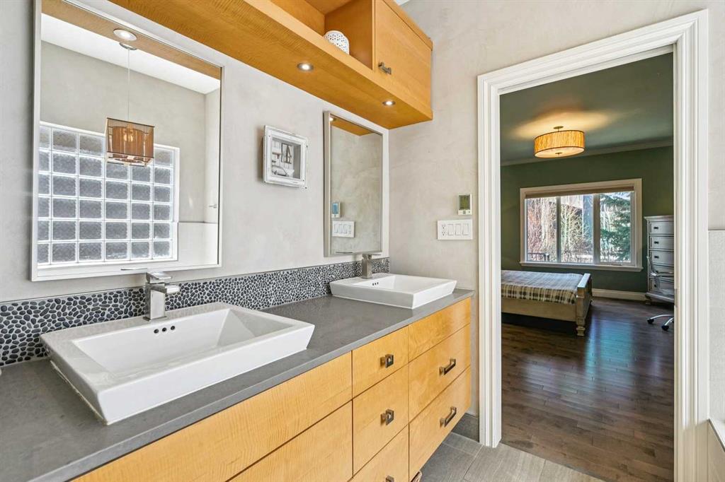 UNPARALLELED LUXURY BUNGALOW IN DISCOVERY RIDGE BACKING ONTO GREENSPACE WITH DESIGNER FINISHES & SMART HOME LIVING! This stunning 1400+ sqft bungalow with an additional 1300+ sqft of fully finished basement space offers an open-concept layout enhanced by soaring vaulted ceilings, skylights, and maple flooring throughout. The chef-inspired kitchen is a true showpiece, featuring cherry cabinetry, built-ins, instant hot water, and a waterfall marble island with cooktop and eat-up seating. Entertain in the elegant formal dining room or relax in the inviting living room with a cozy fireplace. The primary retreat boasts a luxurious 5PC ensuite and walk-in closet, while a second bedroom, 3PC bath, and convenient main floor laundry complete the level. The fully finished basement features cork flooring, a dry bar with wine fridge, spacious rec room and second living area with fireplace, plus 2 additional bedrooms and a 4PC bath. Enjoy the professionally landscaped yard backing onto greenspace with a massive deck, all tucked away on a quiet cul-de-sac surrounded by nature. Located in the highly sought-after Discovery Ridge, a prestigious west Calgary community known for its direct access to Griffith Woods Park, scenic forested pathways, Elbow River valley, and an unmatched nature-filled lifestyle just minutes from the city.