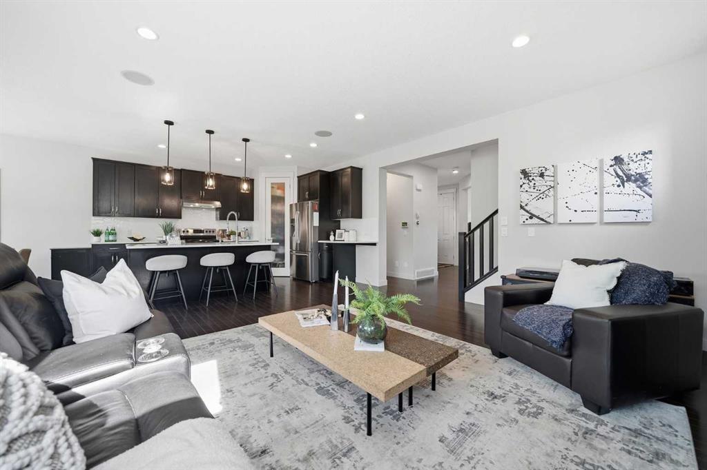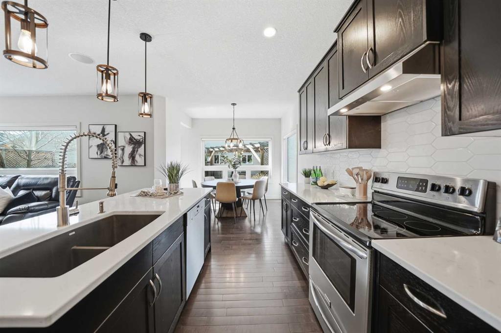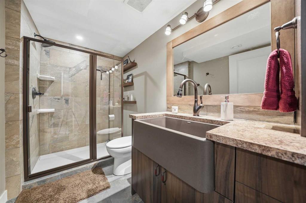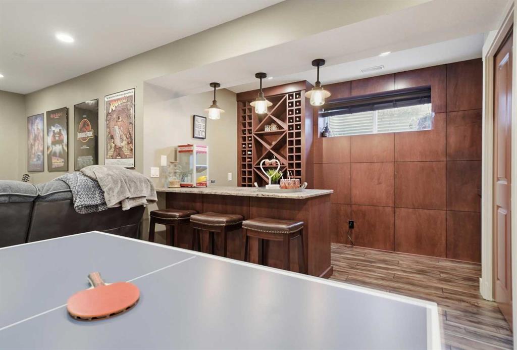 If you’ve been searching for a home in McKenzie Towne that truly stands out, this one is ready to impress. This beautifully maintained detached home offers over 2,000 sq ft of fully finished living space, thoughtfully designed to balance comfort, function, and everyday living. The main level features a bright, open layout with a spacious living room centered around a cozy gas fireplace. The kitchen is the true focal point of the home, complete with a large island, pantry, quartz countertops, new backsplash, and a modern hood fan — ideal for both daily use and hosting. A generous dining nook flows seamlessly off the kitchen, while the front room offers flexibility as a home office, formal dining area, or additional sitting space. A conveniently located laundry room adds to the practicality of the main floor. Upstairs, the layout continues to impress with a versatile bonus room that opens onto a private balcony — a perfect place to unwind. The primary bedroom is spacious and comfortable, featuring a newer triple pane window for added efficiency and quiet, along with a 4-piece ensuite including a soaker tub, stand-up shower, and walk-in closet. Two additional bedrooms and a full bathroom provide great space for family or guests. The fully developed basement offers exceptional versatility, featuring a large recreation and theatre area with a built-in speaker system, creating the perfect setup for movie nights or entertaining. A custom bar with mini fridge, wine rack, and seating area adds to the experience, along with an additional bedroom and a full bathroom with a stand-up shower.