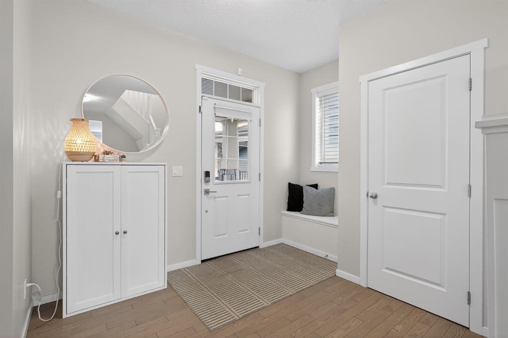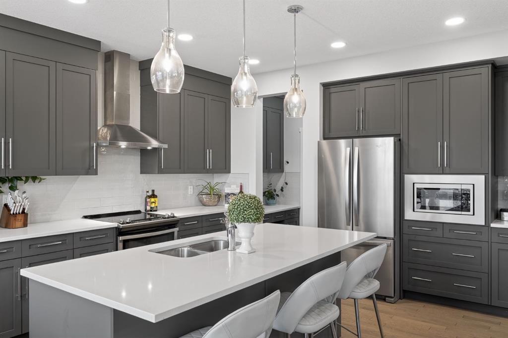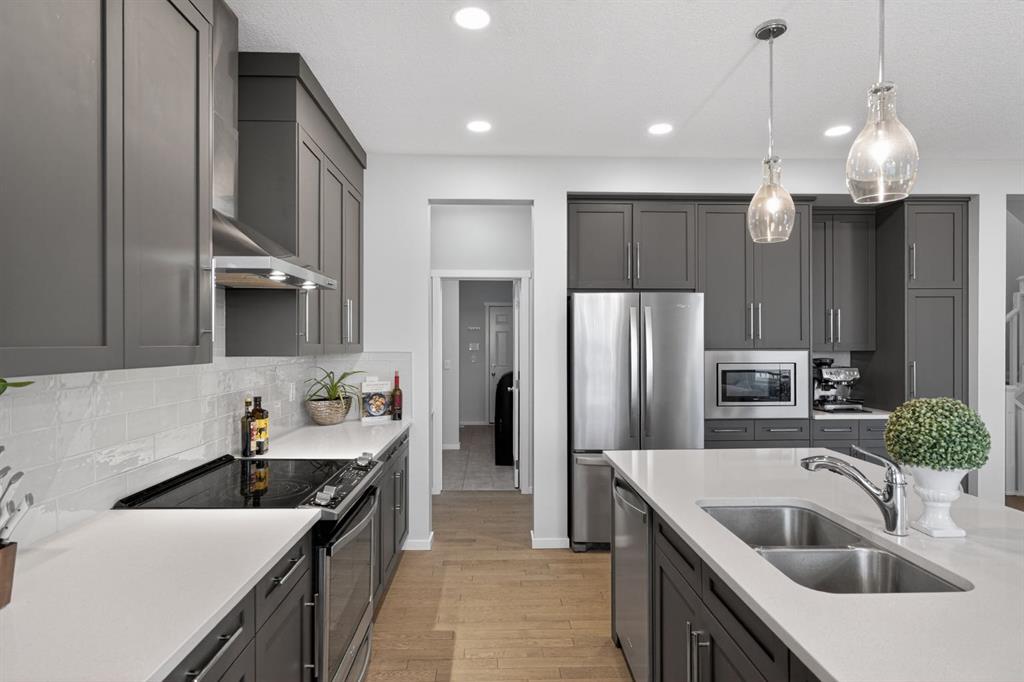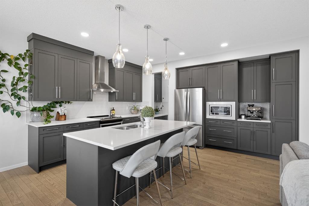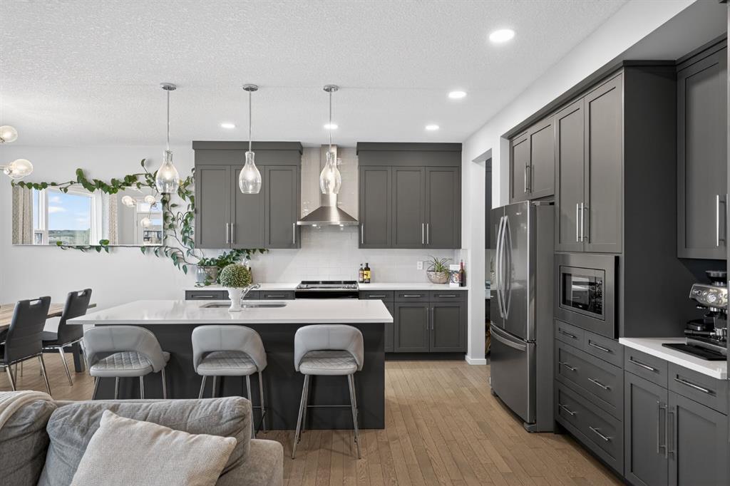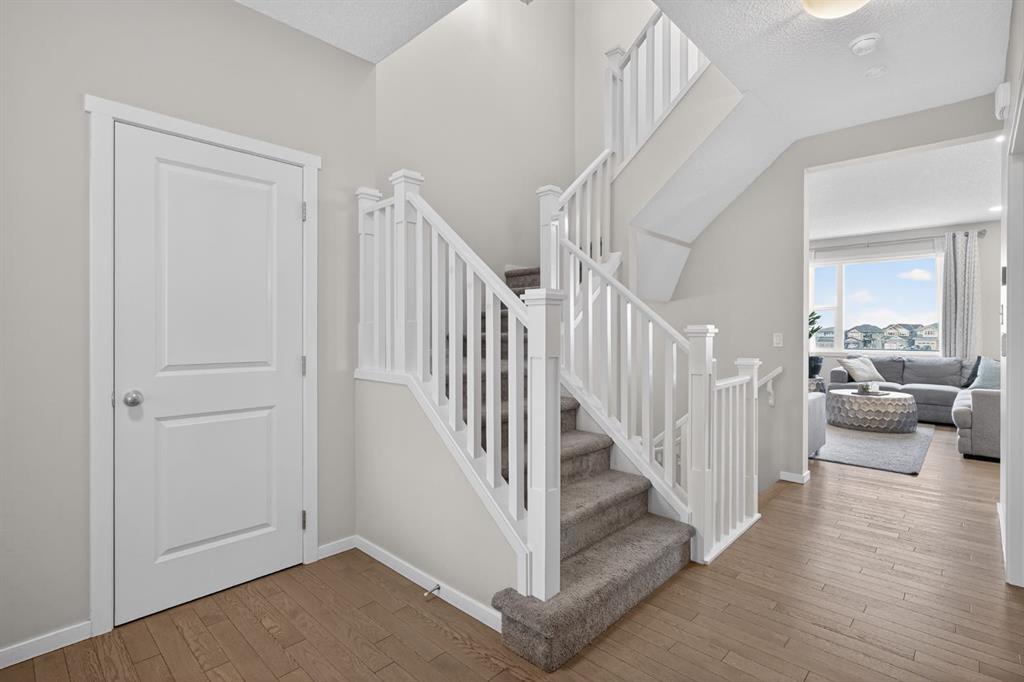 Tucked into a quiet close, this home combines a bright, open layout with a location that truly sets it apart. The south-facing main floor features 9’ ceilings, hardwood flooring, and a seamless flow between the kitchen, dining, and living areas.