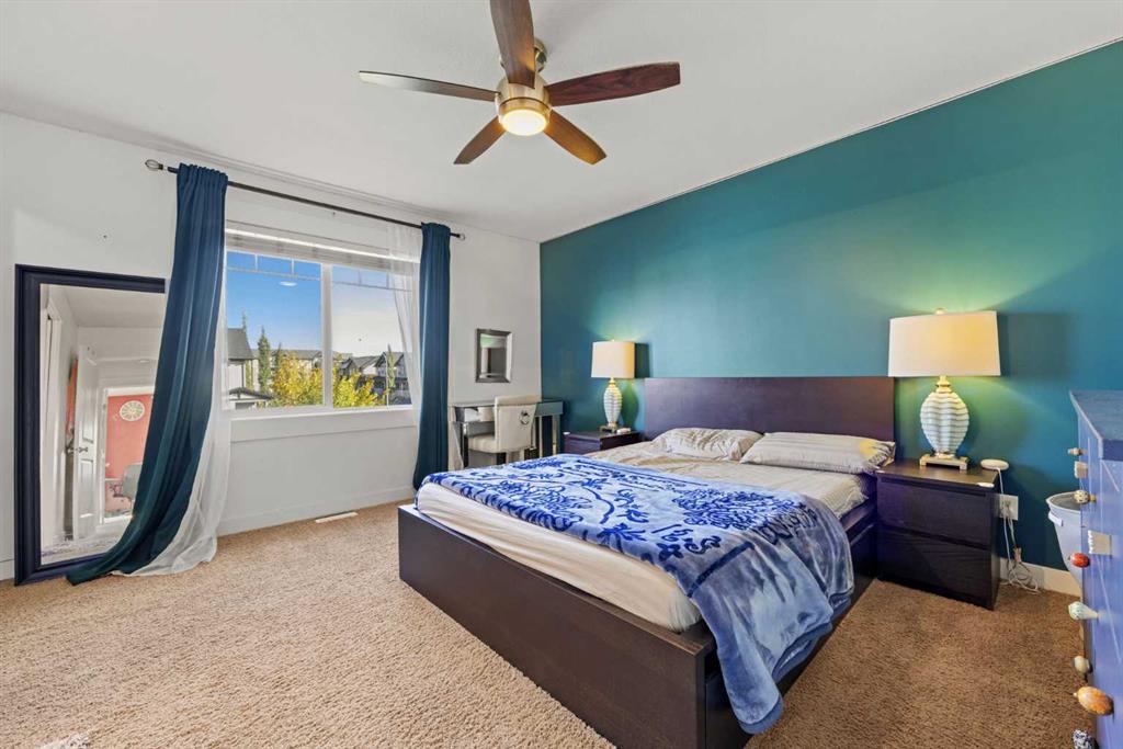 Upgraded Half-Duplex with Two Double Master Bedrooms, Double Garage & Prime Location! This beautifully upgraded half-duplex combines style, function, and a fantastic location. Inside, the open-concept layout features soaring 9-foot ceilings and large windows that flood the home with natural light, creating a bright and welcoming atmosphere from the moment you walk in. The kitchen has been thoughtfully enhanced with full-height cabinetry extending to the ceiling, providing extra storage and a modern, upscale feel. Upstairs, you’ll find two spacious double master bedrooms, each with its own private ensuite featuring stone countertops and generous closet space—perfect for roommates, guests, or multi-generational living. The unfinished basement offers excellent storage and a blank canvas for future development, whether you envision a home gym, entertainment area, or additional bedrooms. Outside, enjoy a fully fenced backyard ideal for pets, kids, or private outdoor living, plus a good-sized double attached garage for added convenience and secure parking. Located just minutes from Calgary International Airport, CrossIron Mills, Costco, and Gold’s Gym, with easy access to Stoney Trail, this home is perfectly situated for commuters and those with active lifestyles. A wide array of nearby amenities makes daily living simple and enjoyable. This move-in-ready property offers flexibility, comfort, and exceptional value. Book your private showing today and discover everything it has to offer!