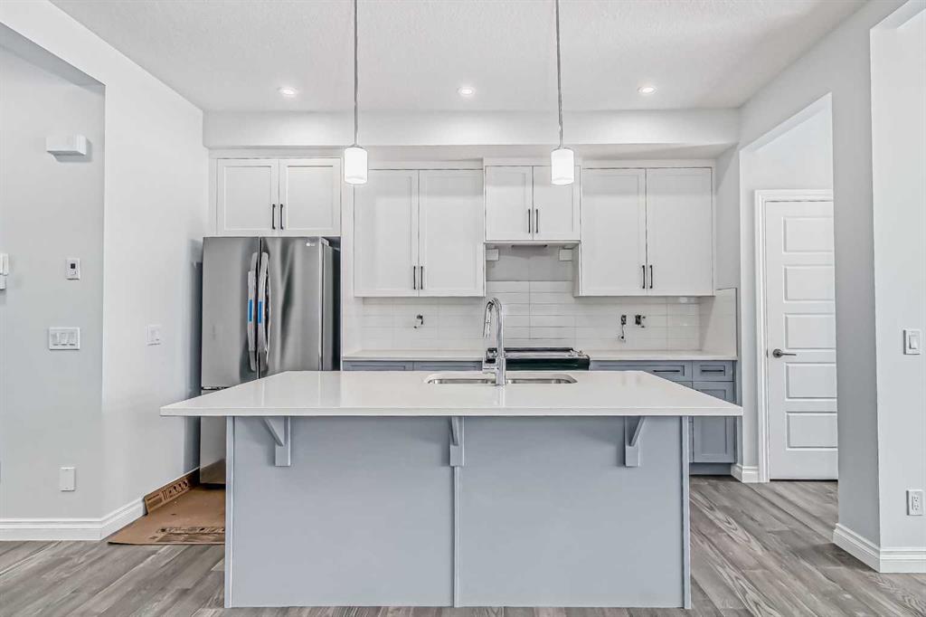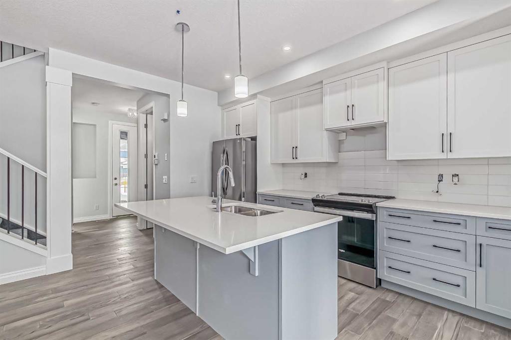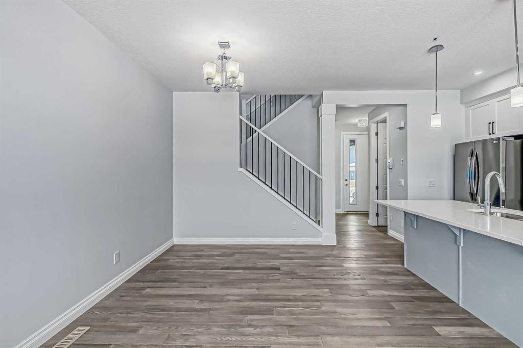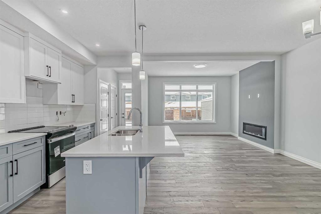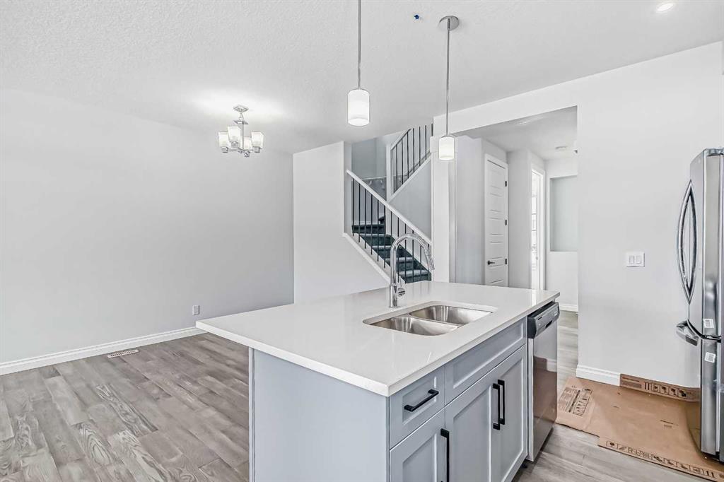 WOW ! A brand new home by Douglas Homes- Master Builder. Located one block from the new park that has been put into Southbow Landing. Thinking you may need a little bit more space ? Why not upgrade to this beautiful attached property- The Canberra ! With a generous almost 1500 worth of square footage, this home is sure to impress. This home provides 3 bedrooms, 2.5 bathrooms, a main floor bedroom or office for a perfect floor plan. The Douglas Homes kitchen comes standard with Quartz countertops on both the main floor kitchen, and the upstairs bathrooms. What an upgrade ! What really sets this home apart is the main floor office, isn’t that handy ? As you go upstairs, the large window going up the stairs brings in lots of natural light. It’s one of our favourite features of this home. Once upstairs, you will find 3 large bedrooms, and a walk in, full size washer and dryer with room for storage. The upstairs primary bedroom is spacious, and has a walk in closet, and even double sinks in the primary ensuite. This home doesn’t even feel like a semi detached property, if you can believe it ! On the way to the basement you will find a side entrance which is perfect for a possible mortgage helper ( with approval from Rocky View County ). This home is ready in about six months and it can be yours this spring, and the best part is you have enough time to choose your palette of colours/finishings. Photos are from prior build & are reflective of fit, finish & included features. Note: Front elevation of home & interior photos are for illustration purposes only. Actual elevation style, interior colours/finishes, & upgrades may be different than shown & the Seller is under no obligation to provide them as such. Directions: Come to the Show Home first located at 115 Southborough Crescent. Show Home hours to view. This home is under construction