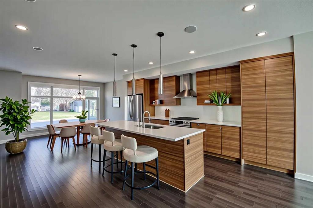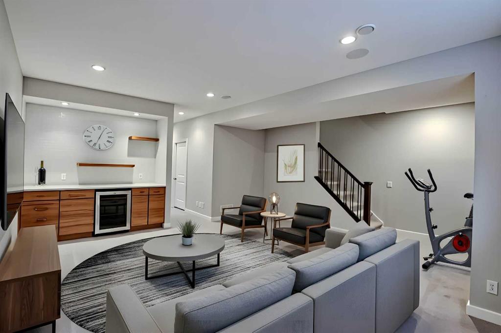 Fall in Love with This Luxury Infill in Glenbrook Welcome to this stunning and meticulously cared-for home offering almost 3000 sq. ft. of living space across three levels. Perfectly blending modern design with everyday comfort, this residence is bright, spacious, and thoughtfully designed throughout. Enter into this home through an 8’ glass front door and you’re greeted by light-filled interiors, 9’ ceilings rich engineered hardwood floors, and an intentional open-concept layout that makes entertaining and daily living effortless. The main level features a spacious dining area large enough to host family and friends, and a chef-inspired galley kitchen equipped with a gas cooktop, expansive quartz island with bar seating, stainless steel appliances, and full-height walnut cabinetry. The open living area is anchored by a sleek gas fireplace and a wall of west-facing windows that fill the home with sunlight and offer views of your private deck and backyard — perfect for BBQs, entertaining, or enjoying the sunset. A custom mudroom with built-in lockers and storage completes the main floor. Upstairs, the primary suite is your private retreat, featuring a large walk-in closet and a spa-like ensuite with a soaker tub, glass shower, and dual sinks. Two generous additional bedrooms, a stylish full bathroom, and an upper-level laundry room add convenience and function to the space. The fully developed lower level boasts 9-foot ceilings, large daylight windows, a spacious family room with wet bar, a fourth bedroom, and another full bathroom, ideal for guests or a growing family. A double detached garage and central air conditioning complete this exceptional home. Located in desirable Glenbrook, you’re just minutes from downtown, top-rated schools, parks, and shopping. This home truly has it all; style, comfort, and an unbeatable location.