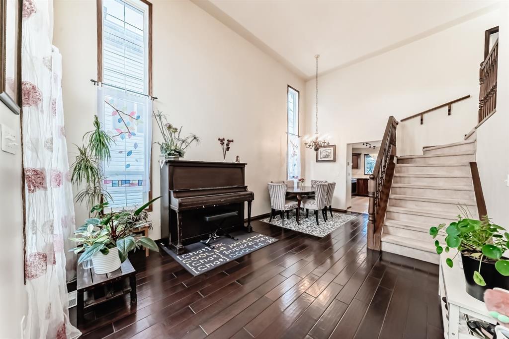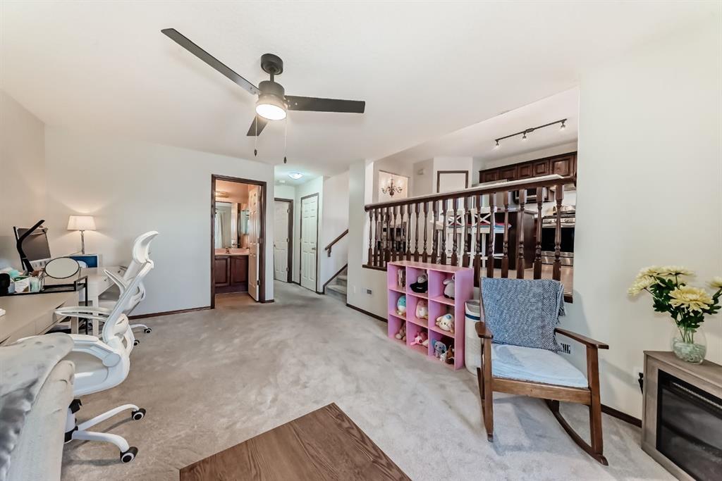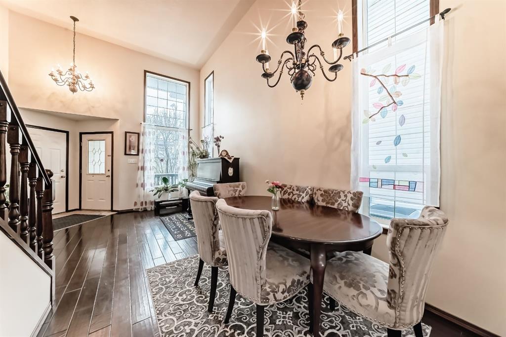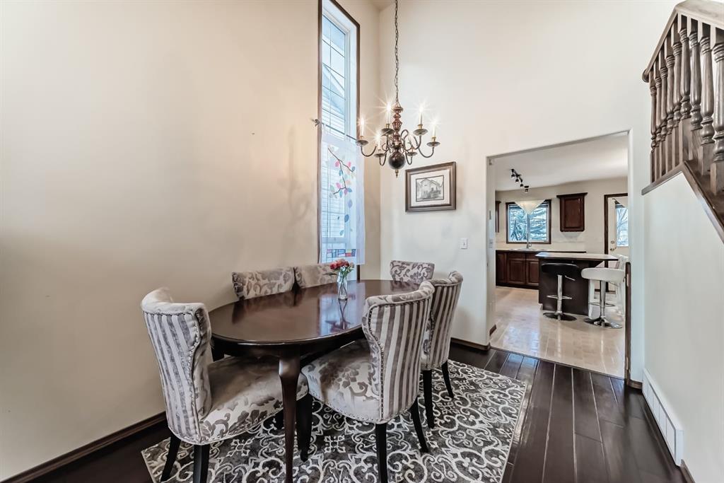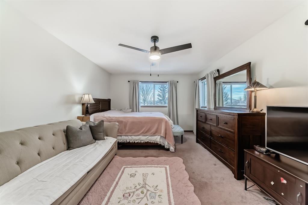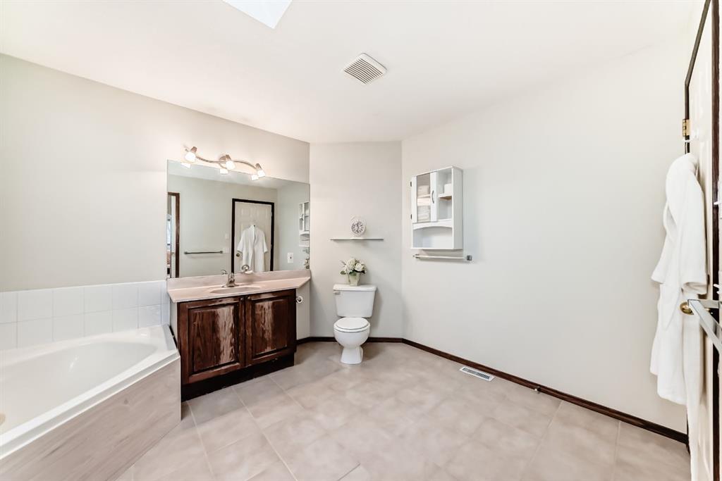 Located on a quiet street, this home backs directly onto a beautiful green space and playground. The seller has recently invested in quality updates, including a new two-tier deck, hardwood flooring, and a new refrigerator with gas stove. The main level features an open layout with soaring vaulted ceilings and 12-foot windows that fill the living and dining areas with natural light. The kitchen is finished with rich cherry-stained oak cabinets and a central island. The third level family room provides a large, comfortable living space. It offers a walk-out to the spacious two-tier deck, which is also accessible from the kitchen. The entire top floor is dedicated to the private master suite. This expansive space includes double walk-through closets and a large ensuite bathroom with a jetted tub, separate shower, and a skylight. The ground level provides a private bedroom and a full bathroom, making it ideal for guests or roommates. On the fourth level, you will find a laundry area with a washer and dryer, plenty of storage space, and a flexible room perfect for an office or hobby room. New roofing in 2023 and water heater in 2024. The location provides easy access to Deerfoot Trail and shopping at 130 Ave SE. Douglasdale School is a short walk away, and there is a playground right behind the backyard.