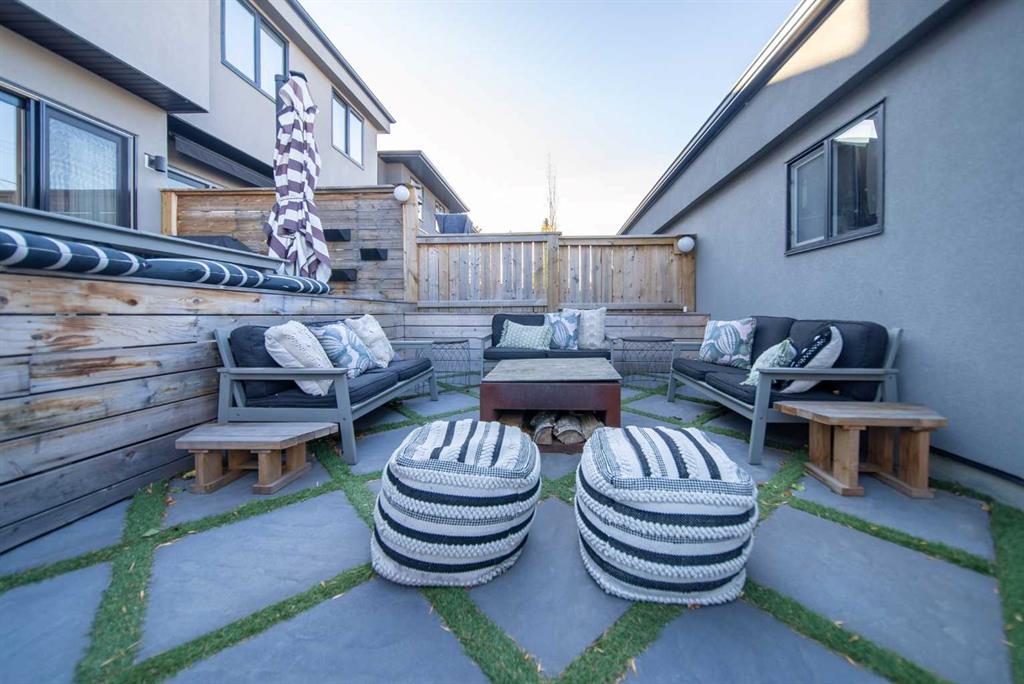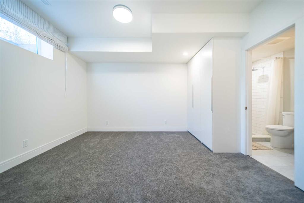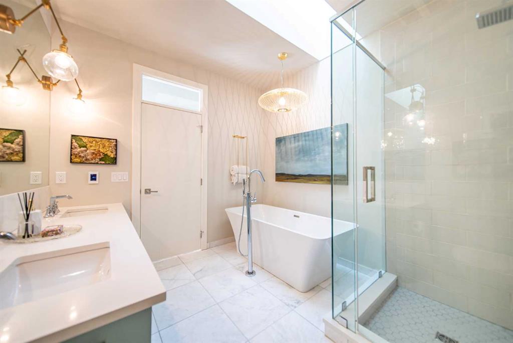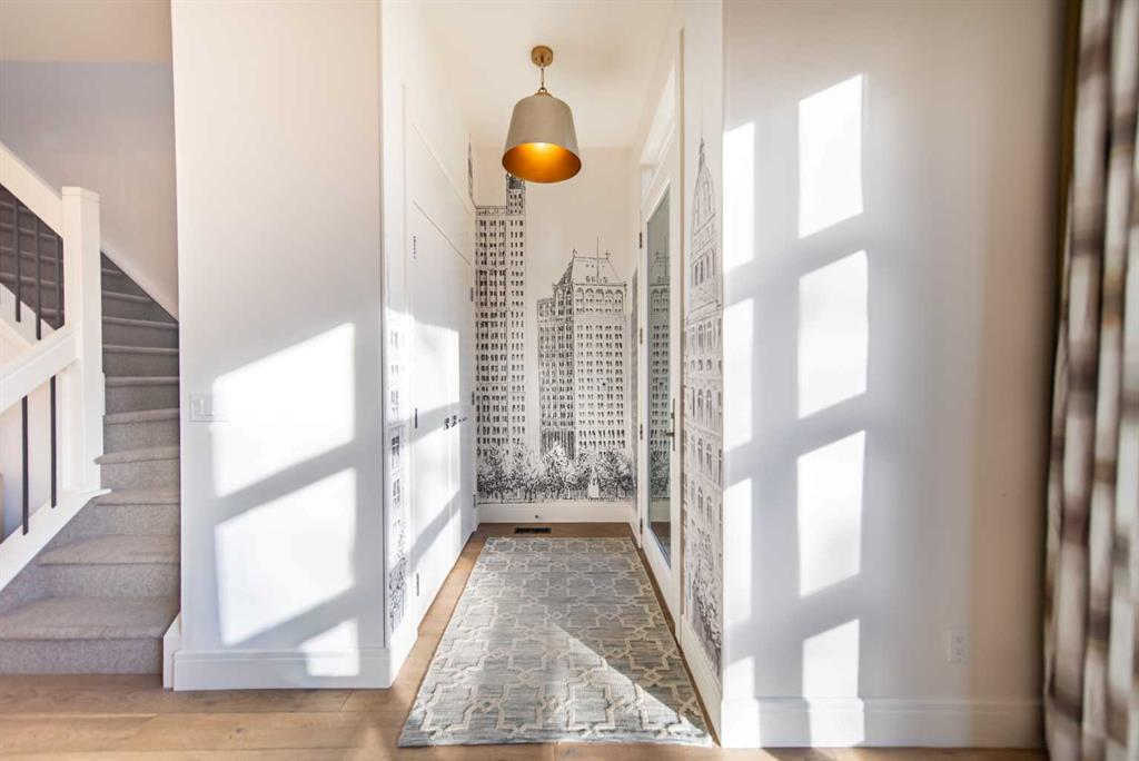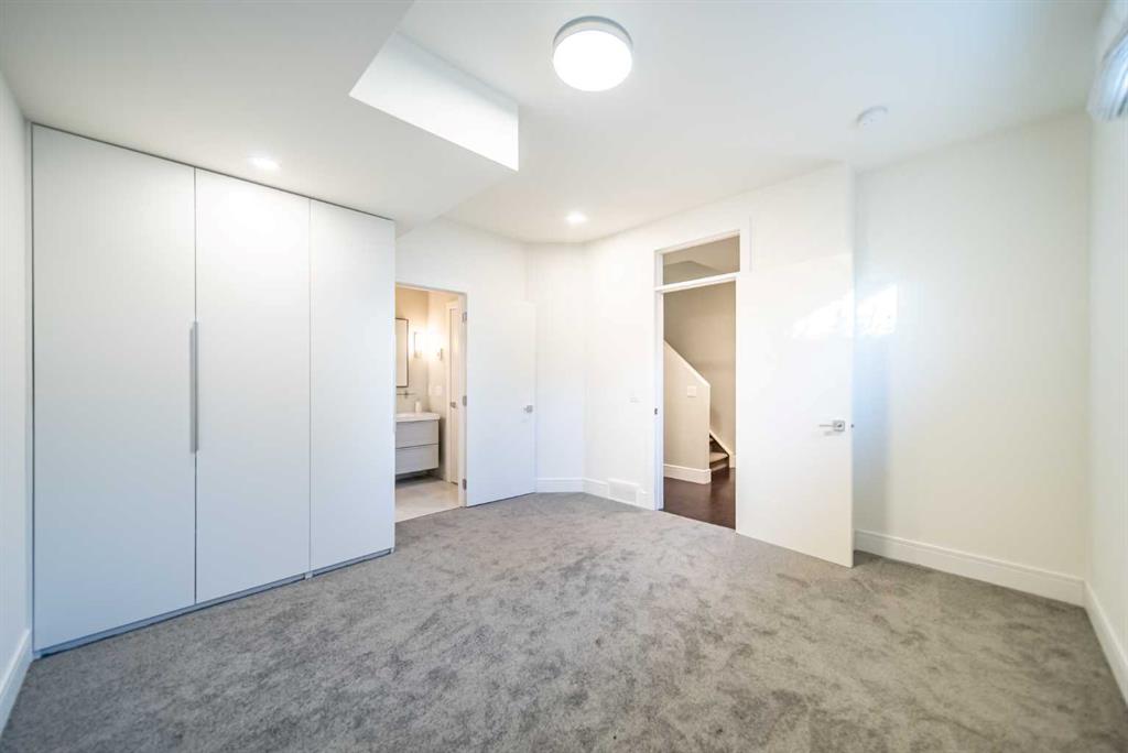 Discover this beautifully curated semi-detached home in the vibrant community of Glenbrook. Offering more than 2,500 sq. ft. of thoughtfully designed living space, this 4 bedroom, 3.5 bathroom residence combines modern elegance with everyday functionality. The main floor showcases an open-concept layout centered around a showstopping honed Arabescato Marble island, complemented by custom Rockpoint cabinetry and premium appliances a dream setup for both entertainers and home chefs. Wide plank Oiled Oak engineered hardwood flows throughout the main and upper levels, while wool carpeting on the stairs adds warmth and sophistication. In the living room, built-in shelving and a gas fireplace create a welcoming focal point, while French sliding doors extend the space to a private west-facing backyard with a deck and stone patio ideal for hosting sunset gatherings. Upstairs, the primary suite is a true retreat with a spa-inspired ensuite featuring heated floors, a freestanding soaker tub, glass enclosed shower, dual vanity, and custom cabinetry. Two additional bedrooms, a functional laundry room and a full bath complete the upper level. The fully finished basement offers even more living space with a sleek wet bar, a large rec room with hidden storage cleverly tucked behind a secret door, plus a guest bedroom with a cheater ensuite. Rounding out this home is an insulated, and heated double detached garage with rough-in for EV charging. Perfectly positioned near parks, schools, and everyday conveniences, this property delivers upscale living in one of Calgary’s most desirable neighbourhoods.