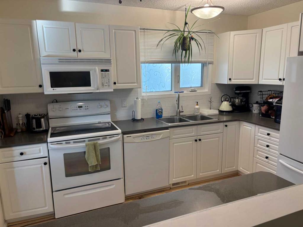 excellent upgrades of KITCHEN, DINING, LVING AREAS, BATHROOMS, & 4 bedrooms!! Fantastic location, quick Ring road access, Transit near, kids are within 2 blocks of schools & community parks & playgrounds, Bike paths convenience store & shops near… FURNACE 2009, WINDOWS & PATIO DOORS IN 2010, FLOORING & ROOF SHINGLES in 2013… KITCHEN & DINING AREAS are OPENED & UPGRADED….ENLARGED FRONT PRIVATE BALCONY . 2 PARKING STALLS in the back with Lane access & plenty of parking in the front. Inviting Great Room with the Corner fireplace. LARGE WINDOWS in the Lower level with the bedrooms in the back & the front recreation room & a second full bathroom that has the potential of a suite in the future….