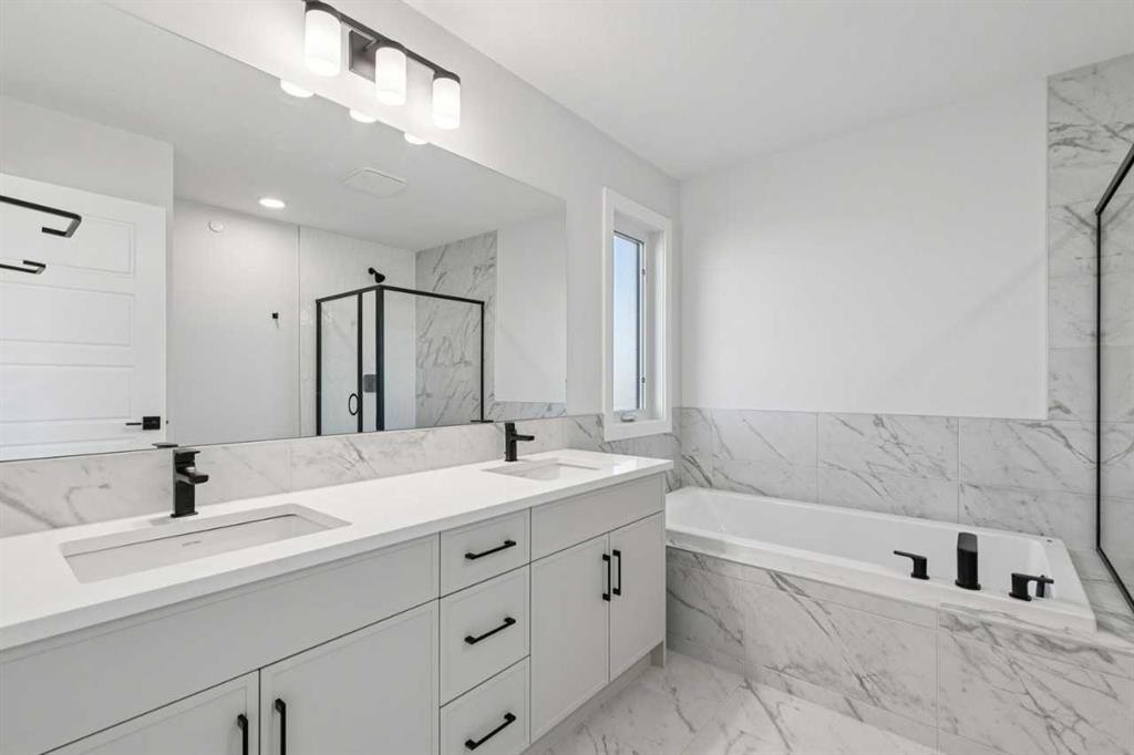 Upstairs, the primary bedroom is your personal retreat with large windows, a WIC and 5-piece ensuite with soaker tub and separate shower. Two extra bedrooms and a spacious bonus room provide ample space for entertaining, as well as comfortable accommodations for family and guests. Photos are representative.
