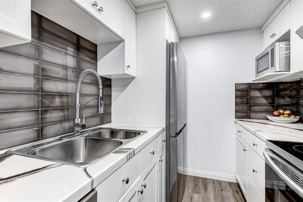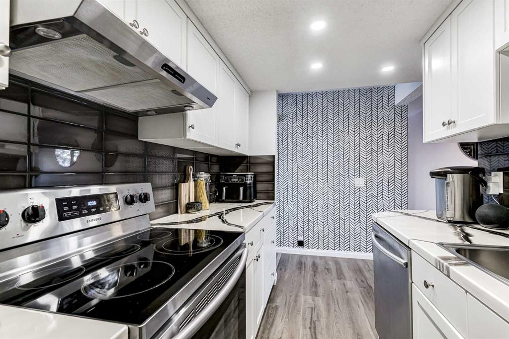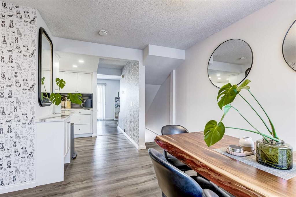 GORGEOUS, EXTENSIVELY RENOVATED 3 bedroom condo in the heart of Huntington Hills – close to schools, shopping and the scenic Nose Hill Park! Offering 1047 sqft of developed living space, the main level features living, dining, and kitchen areas, plus a mudroom with direct access to a private, fully fenced backyard. Upstairs, three generous bedrooms share a 4-piece full bath, providing comfortable family living. The list of upgrades is endless – freshly painted with newer flooring and carpet throughout. Newer kitchen appliances, countertops and cupboards, newer doors and windows, closet doors, sliding door to balcony, light fixtures, ceiling fan, and window coverings. Convenient lower-level laundry room and plenty of storage. Washer, dryer, furnace, and hot water tank were all replaced in 2022 for added peace of mind. Enjoy an attached carport (10’8″ x 17’3″) plus driveway (space for two vehicles) and plenty of visitor parking. The front balcony (3’6” x 17’4”) spans the entire length of the home and is accessible from the sunny living room area—perfect for morning coffee or evening relaxation. Pets allowed with Board Approval. Must be seen – you will be impressed!