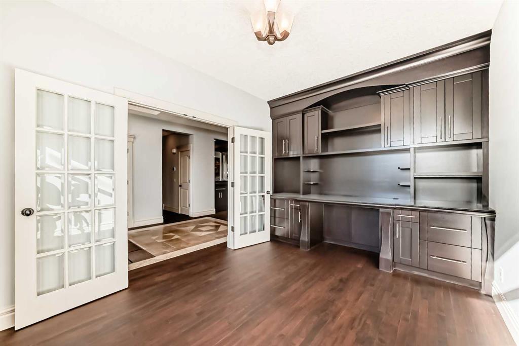 Step inside to discover a thoughtfully designed interior where sophisticated finishes meet classic style. The gourmet kitchen is a true showpiece, showcasing ceiling-height cabinetry, granite countertops, a walk-in pantry, a butler’s pantry, and high-end appliances. It flows seamlessly into the generous living area, making it ideal for both relaxed everyday living and elegant entertaining. A main floor office with custom built-ins and rich hardwood floors throughout further elevate the home’s refined character.