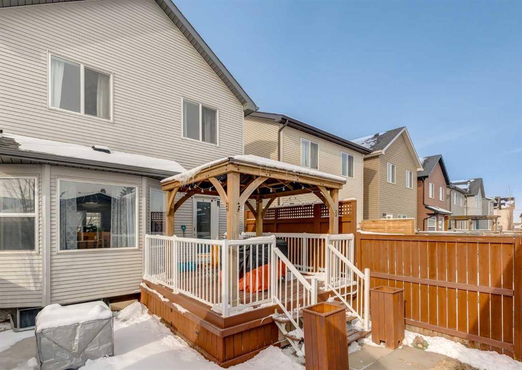 Great Value! This impeccably maintained 4 BEDROOM and 4 BATHROOM detached home represents INCREDIBLE VALUE and a GREAT PRICE in today’s market. Located in the sought after, family friendly LAKE COMMUNITY of AUBURN BAY, this 2 Storey residence offers everything you are looking for including a FULLY FINISHED BASEMENT, an OVERSIZED GARAGE, CENTRAL AIR CONDITIONING & LAKE ACCESS for the family!. With 2,098 SQ. FT. of finished living space, the main level features an open concept layout with HARDWOOD FLOORING throughout. The kitchen is equipped with STAINLESS STEEL APPLIANCES, a center island with a BREAKFAST BAR, and a dedicated dining area. The living room is centered around a GAS FIREPLACE, and the main floor is completed by a mud room and 2 piece bathroom.The upper level contains three bedrooms. The PRIMARY BEDROOM includes a 4 PIECE ENSUITE and a walk in closet. An additional 4 piece bathroom serves the other two bedrooms. The FULLY FINISHED BASEMENT adds a great RECREATION ROOM, a fourth bedroom, and a full 4 piece bathroom. The home is also upgraded with a HOT WATER ON DEMAND boiler system. The backyard features a DECK WITH A PERGOLA and leads to an EXTRA WIDE detached double garage ($26’0″ times 20’1″$). This property is within WALKING DISTANCE to ST. GIANNA SCHOOL and AUBURN BAY SCHOOL. Residents enjoy year round LAKE ACCESS for swimming, boating, and skating. The AUBURN HOUSE facility provides incredible AMENITIES including a gymnasium, tennis courts, spray park, and picnic areas for the ultimate family lifestyle. This vibrant community is built around the 43 ACRE FRESHWATER LAKE, offering a true resort feel right at home. Close to SOUTH HEALTH CAMPUS and SETON shopping, this home offers an excellent price point and WONT LAST LONG!