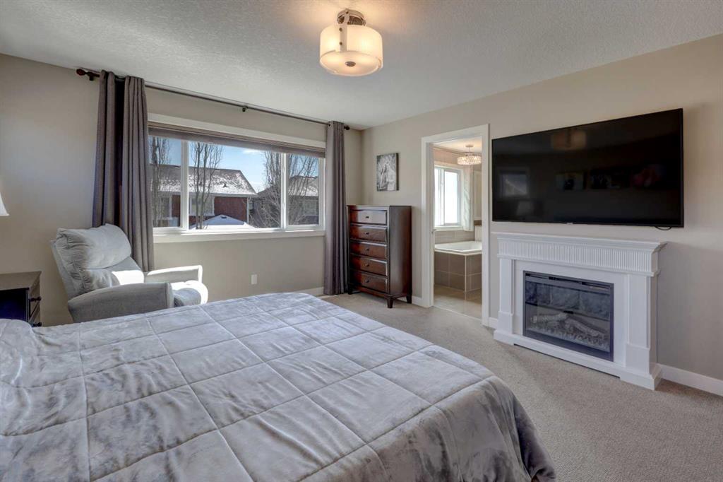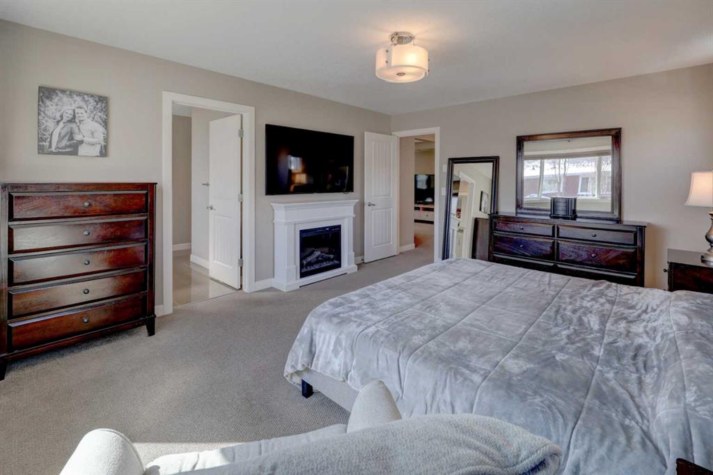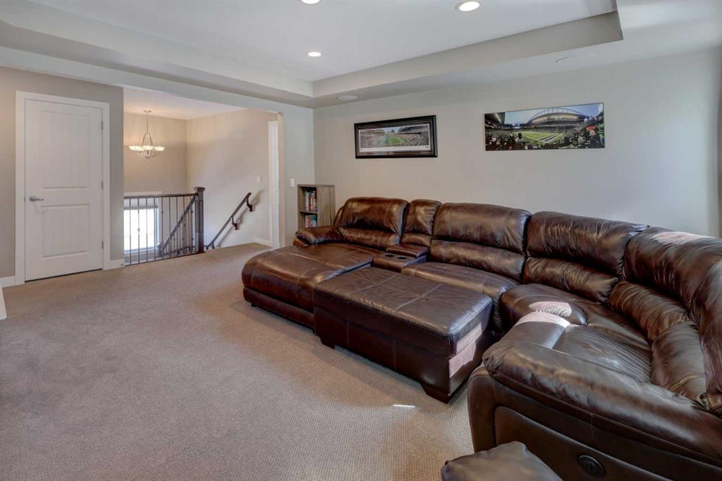 Beautiful Cedarglen-built home perfectly situated on a corner lot in sought-after Cranston Riverstone. From the moment you step inside, you’re welcomed by a spacious entry, 9-foot ceilings, & rich hardwood flooring that flows throughout the main level. The stylish kitchen is designed for both everyday living & entertaining, featuring two-tone cabinetry, granite countertops, a massive island with eating bar, & a walk-through pantry leading to the mudroom. Imagine family dinners & fun dinner parties in the dining area! The bright & inviting living room is anchored by a cozy gas fireplace, while the main floor office with double French doors & built-in workspace makes working from home effortless. Upstairs, the impressive bonus room with coved ceiling offers the perfect place to unwind. The primary suite is a true retreat, complete with a dream ensuite & a large walk-in closet, while two additional bedrooms provide plenty of space for family or guests & the upper laundry is very efficient. The fully finished basement adds incredible versatility with a large open area ideal for a rec room, gym, or games space, plus a bathroom rough-in & 2 large egress windows for future development. Step outside to your private backyard oasis, featuring mature trees, a large deck with privacy glass, retractable awning, gas BBQ hookup, & a spacious shed—perfect for relaxing or entertaining all summer long. All this just steps to a beautiful network of nature walking paths!! Welcome home!!!