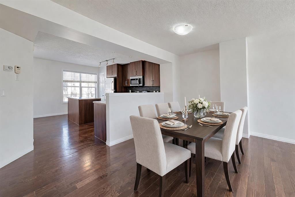AMAZING VALUE! Freshly painted on all levels, professionally deep cleaned, and completely move-in ready. This impressive townhome offers generous square footage with all levels above grade and a wide, open layout that feels more like a detached home. Ideal for smaller families, roommates, or investors looking for strong rental potential. Street-level entry features a versatile flex room, perfect for a home office, gym, playroom, or gaming space. Oversized windows flood the open-concept main floor with natural light. Enjoy a spacious family room with sliding doors to a sunny south-facing deck, plus a well-designed kitchen with dining nook, center island, full tile backsplash, stainless-steel appliances, and abundant cabinetry. Genuine hardwood floors adorn the main level, while freshly steam-cleaned carpet adds comfort in the bedrooms. Dual primary suites each offer a 4-piece ensuite and walk-in closet, an ideal setup for shared living a spacious nursery/child’s room, or guests. The oversized upper laundry room includes shelving and extra space for added storage or a drying station. Skip the tandem compromise. This home offers the sought-after side-by-side double garage for everyday convenience and long-term appeal. Both the monthly condo fees and annual community fee are quite affordable. Located in a beautifully maintained and well-managed complex where nearby amenities include South Health Campus, Cineplex VIP Cinema, YMCA and major shopping. Cranston Residents’ Association offers tennis courts, fitness, skating rink and splash park. Don’t miss out on this exceptional space in one of Southeast Calgary’s most loved communities. Book your viewing today. We can’t wait to show you around!