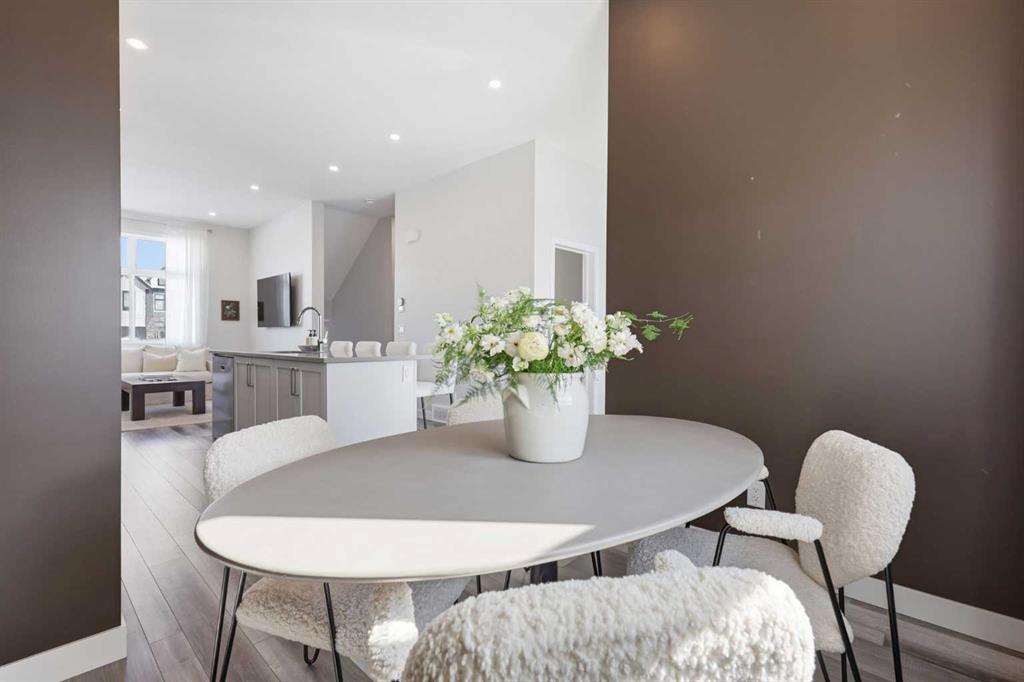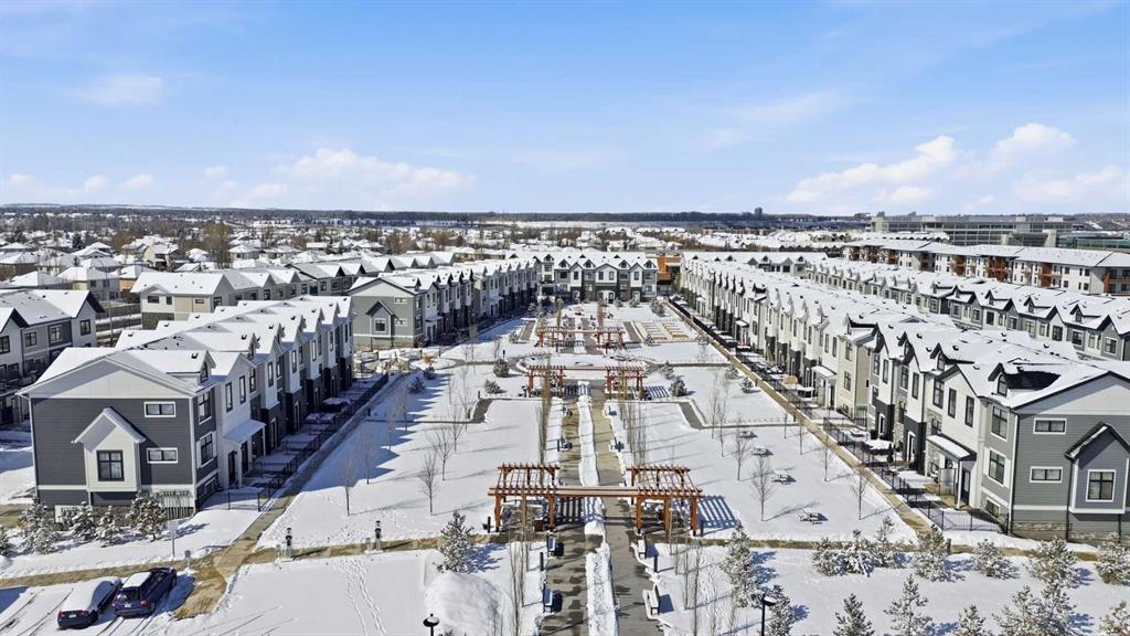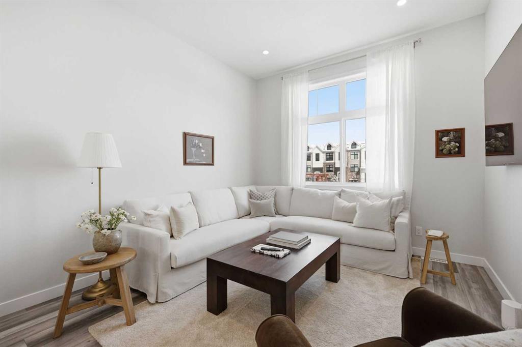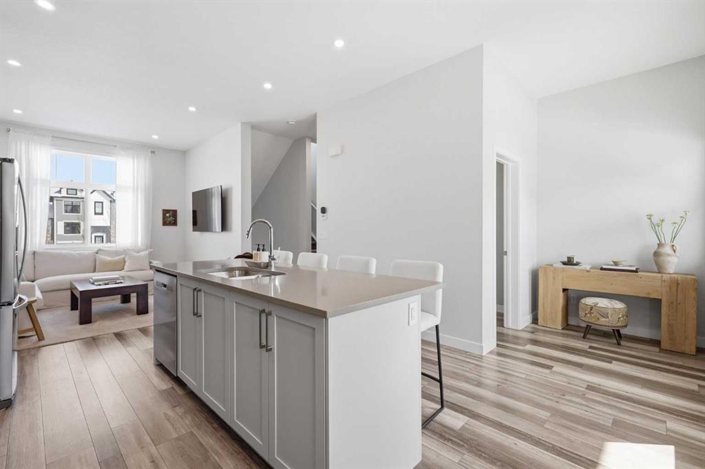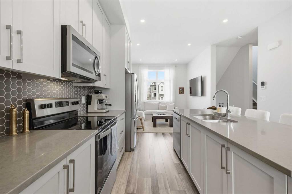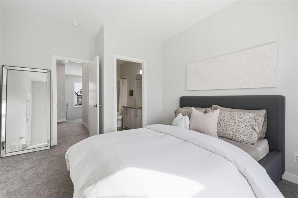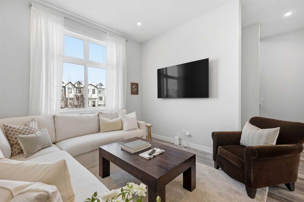 OPEN HOUSE SATURDAY, APRIL 4TH FROM 11 AM – 1 PM. Located in Douglasdale’s sought after Les Jardins community, this impeccably finished and stylish 2 bedroom, 2.5 bath townhome with a double attached garage offers exceptional convenience—just minutes from the shops and services of Douglas Square and Quarry Park. The open and airy main level features vinyl plank flooring and high ceilings, creating a bright, welcoming atmosphere. A spacious living area flows seamlessly into the beautifully appointed kitchen, complete with quartz countertops, a large island with eating bar, generous cabinetry, and stainless steel appliances. The adjacent dining area is ideal for family meals or entertaining. A 2 piece powder room completes the main floor. Upstairs, you’ll find two well sized bedrooms, a 4 piece bath, and convenient laundry facilities. The primary bedroom includes a walk through closet leading to a private 4 piece ensuite. The second bedroom enjoys direct access to the main bath, offering a thoughtful semi ensuite layout. The lower level, with direct garage access, features a versatile flex space—perfect for a home office, fitness area, or cozy media room. Additional highlights include central air conditioning, Smart Home technology, a sunny south facing balcony, and a charming front patio overlooking the community’s 2 acre central garden. Residents of Les Jardins enjoy outstanding amenities, including a state of the art fitness centre with outdoor terrace, a dedicated dog park, and a community garden. Schools, shopping, public transit, and the scenic Bow River pathway system, Fish Creek Provincial Park, and Carburn Park are all close by, with quick access to Deerfoot and Glenmore Trails for effortless commuting.