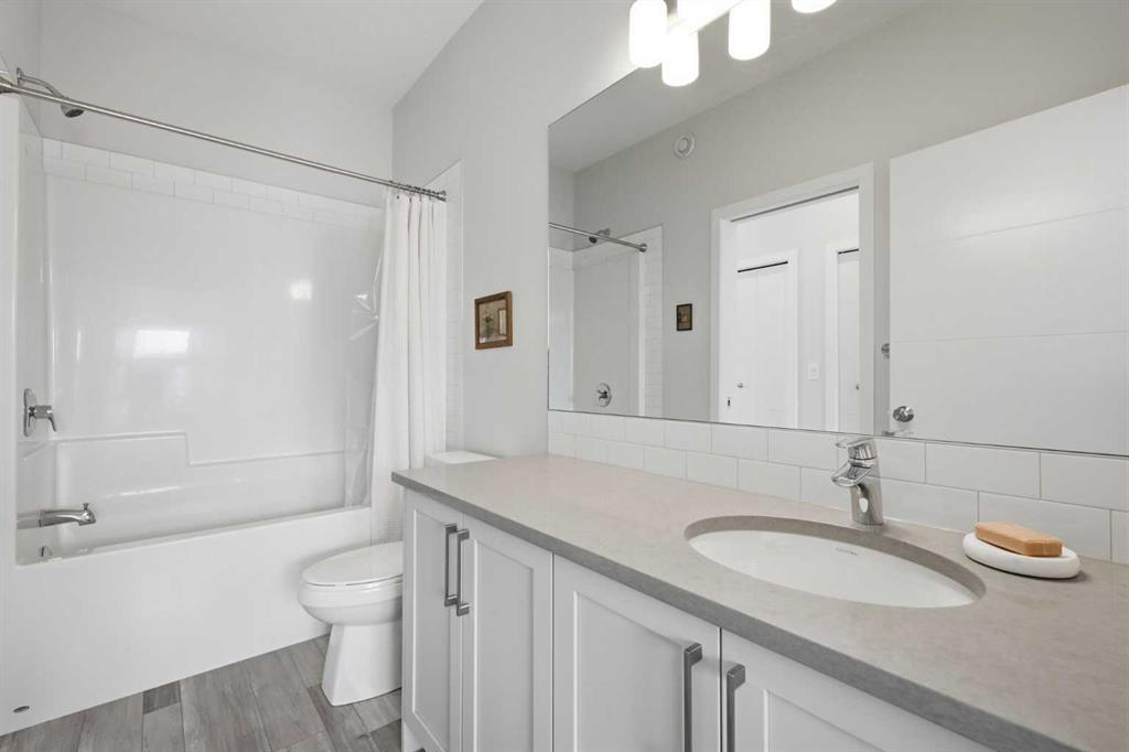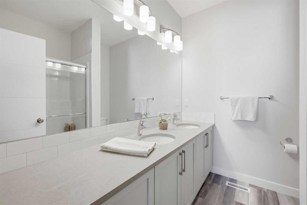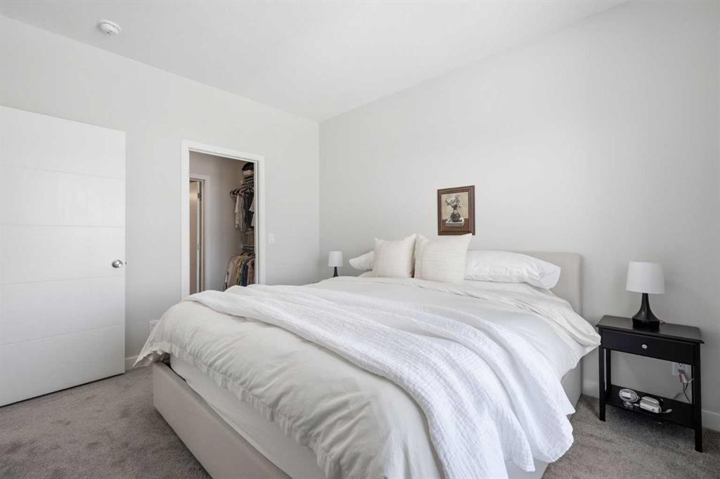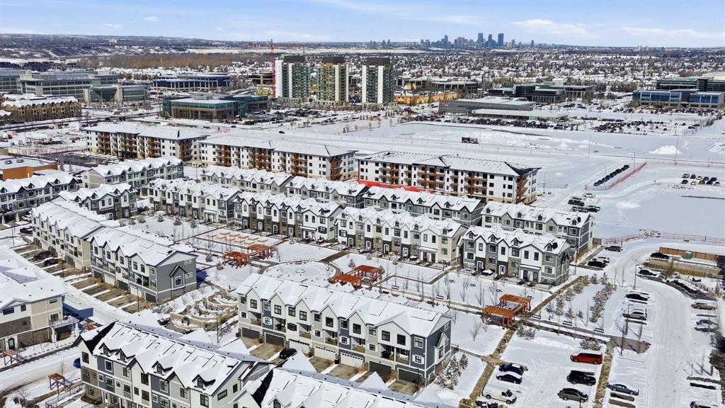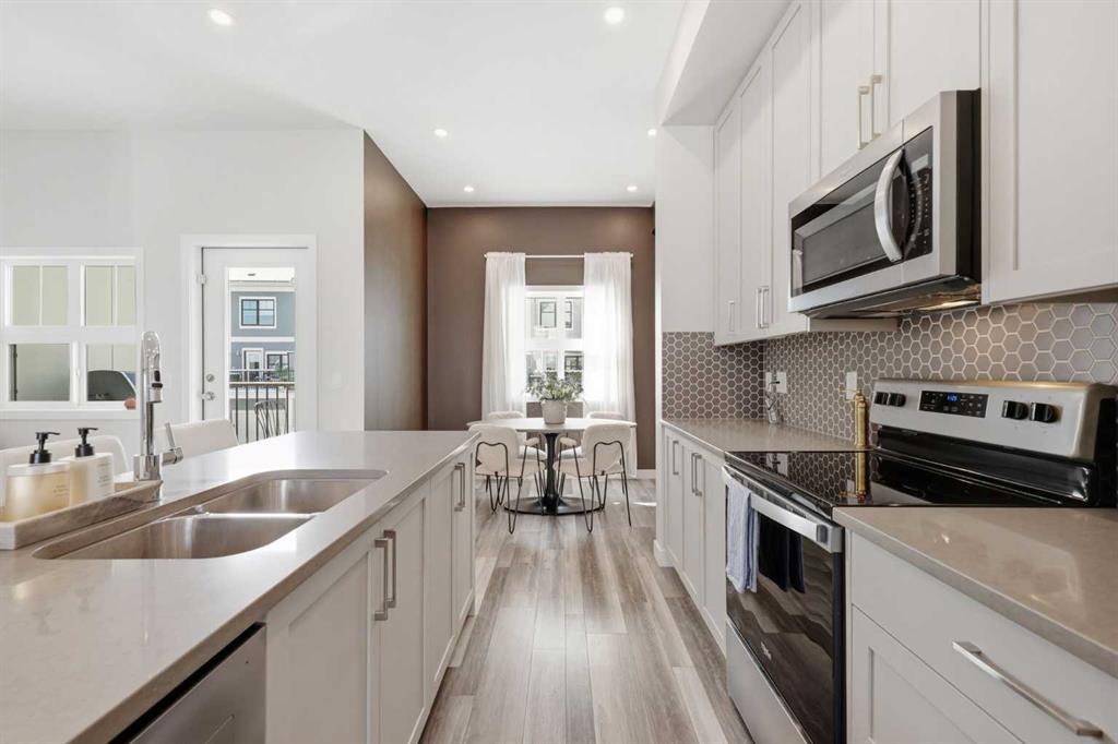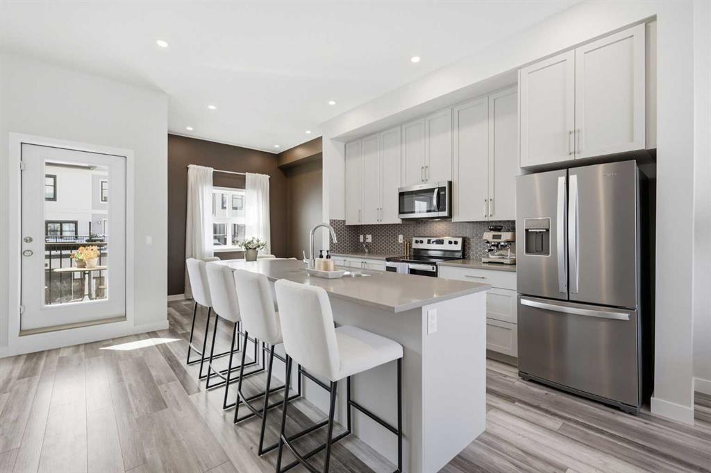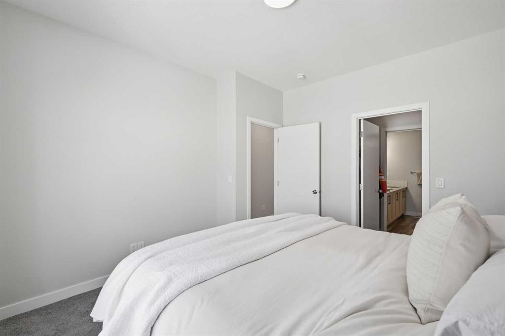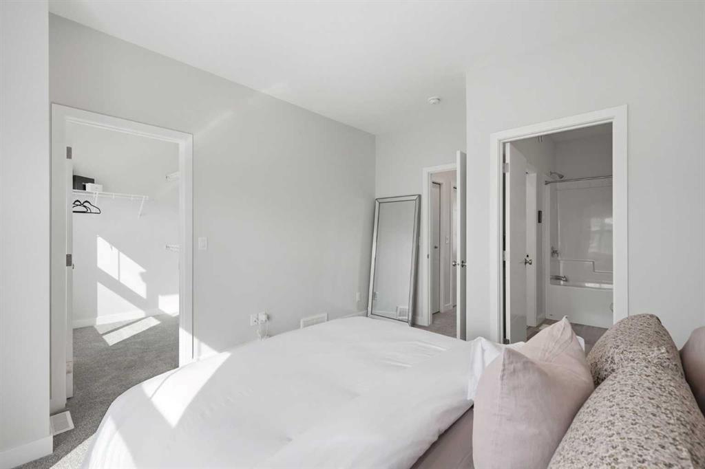 OPEN HOUSE SATURDAY, APRIL 4TH FROM 11 AM – 1 PM. Located in Douglasdale’s sought after Les Jardins community, this impeccably finished and stylish 2 bedroom, 2.5 bath townhome with a double attached garage offers exceptional convenience—just minutes from the shops and services of Douglas Square and Quarry Park. The open and airy main level features vinyl plank flooring and high ceilings, creating a bright, welcoming atmosphere. A spacious living area flows seamlessly into the beautifully appointed kitchen, complete with quartz countertops, a large island with eating bar, generous cabinetry, and stainless steel appliances. The adjacent dining area is ideal for family meals or entertaining. A 2 piece powder room completes the main floor. Upstairs, you’ll find two well sized bedrooms, a 4 piece bath, and convenient laundry facilities. The primary bedroom includes a walk through closet leading to a private 4 piece ensuite. The second bedroom enjoys direct access to the main bath, offering a thoughtful semi ensuite layout. The lower level, with direct garage access, features a versatile flex space—perfect for a home office, fitness area, or cozy media room. Additional highlights include central air conditioning, Smart Home technology, a sunny south facing balcony, and a charming front patio overlooking the community’s 2 acre central garden. Residents of Les Jardins enjoy outstanding amenities, including a state of the art fitness centre with outdoor terrace, a dedicated dog park, and a community garden. Schools, shopping, public transit, and the scenic Bow River pathway system, Fish Creek Provincial Park, and Carburn Park are all close by, with quick access to Deerfoot and Glenmore Trails for effortless commuting.