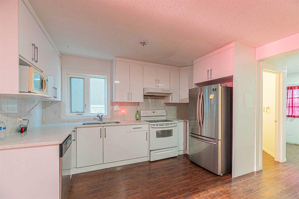 Welcome to this newly renovated two-storey home featuring an oversized double detached garage. New paint, carpet, New Kitchen Cabinets, and upstairs Bathroom.