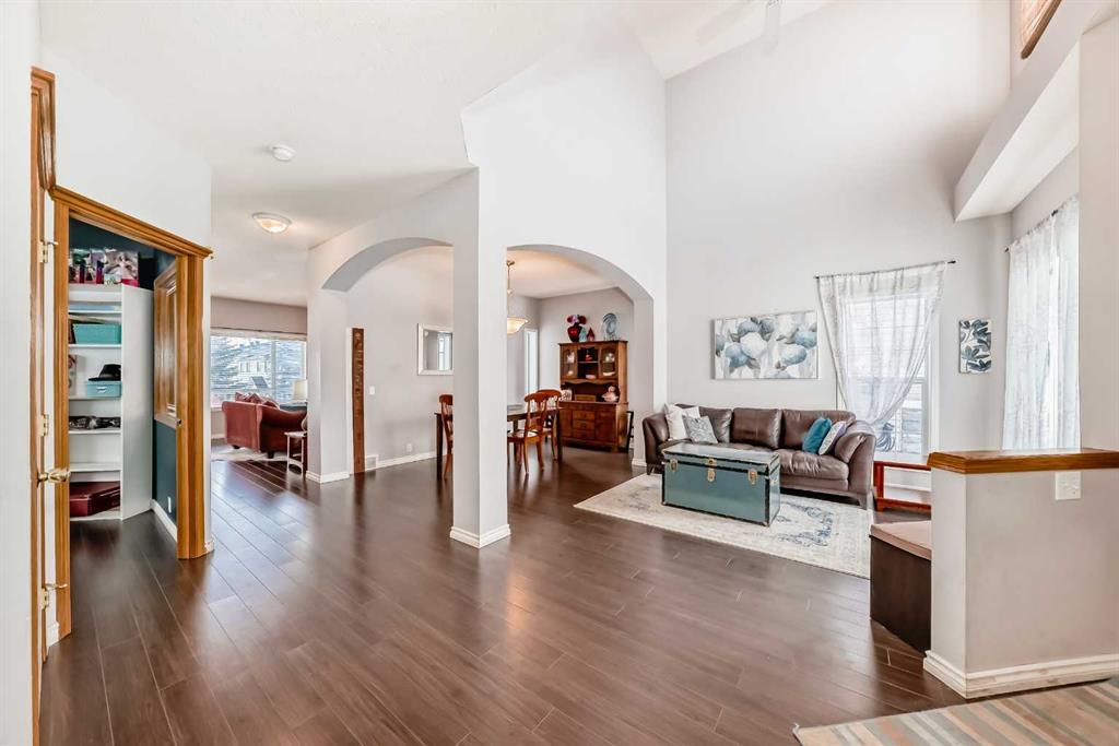 Welcome to this fantastic opportunity on a quiet street in desirable McKenzie Lake! This 6 bedroom, 3.5 bath fully develop home with over 3200 sq ft of developed space and 9 ft ceiling on the main floor. Step in to a 2-storey formal living room with soaring ceiling and West-facing windows. Archways to the formal dining room plus a convenient main floor home office. The spacious kitchen has oak cabinetry, stainless steel appliances, a corner pantry, central island and bright breakfast nook. A generous great room offers a gas fireplace plus laminate flooring on the entire main floor. A private 2-pce bath completes the main floor. Upstairs, the huge primary bedroom has plenty of space for a seating area in the bay window. Large walk-in closet and spacious 4-pce ensuite bathroom with a corner soaker tub and separate shower. An additional 3 bedrooms on the upper floor, a 4-pce bathroom, and convenient upper laundry. The fully finished basement was developed with permits in 2019 and offers an expansive rec room, 2 more bedrooms, another full bathroom, and remaining storage. All this plus A/C, new hot water tank, newer furnace, and a water softener. Oversized double attached garage! The raised deck has steps down to the fully fenced and landscaped yard. Conveniently located just a 2 minute walk to Mountain Park school on a quiet street and close to park views & pathways.