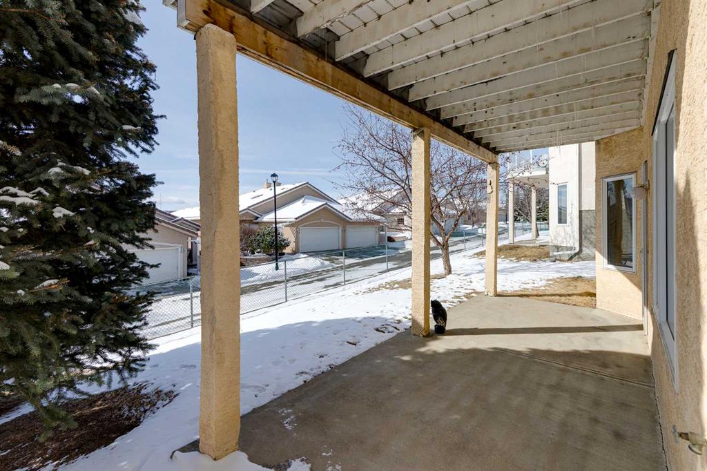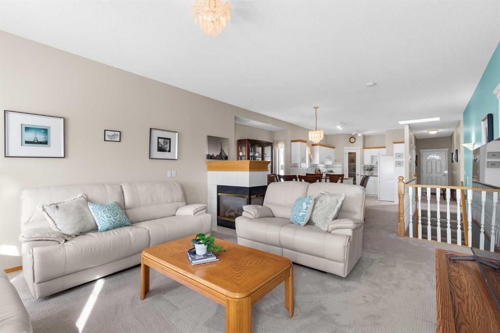 Located in the sought-after community of Scenic Acres, this detached bungalow is part of The Villas of Westchester Pointe, offering the convenience of condo living within a private, residential setting. Nestled along the ridge, the home enjoys an elevated position with expansive views toward the Bow River valley, Winsport, and downtown Calgary. With more than 2,600 sq. ft. of developed living space, a walk-out lower level, and a single attached garage, this property provides a comfortable and low-maintenance lifestyle. The main floor is designed for everyday living and easy entertaining. A welcoming entry leads to a versatile den, ideal for a home office or quiet sitting area. The open-concept kitchen, dining, and living areas are filled with natural light from large windows. The kitchen features white cabinetry, matching appliances, a corner pantry, and generous counter and storage space. The dining area accommodates larger gatherings and connects seamlessly to the living room, where a three-sided fireplace creates a shared focal point between the two spaces. From the living room, step onto the upper deck to enjoy sweeping views, including downtown in the distance, as well as the surrounding landscape. The primary bedroom is well proportioned and includes a walk-in closet and a four-piece ensuite. A two-piece powder room and a convenient main floor laundry room add to the functionality of this level. The walk-out basement extends the living space and is bright and welcoming, with direct access to a covered patio and grassy outdoor area. This level includes a large recreation room, a bedroom, a four-piece bathroom, and ample storage, offering flexibility for guests, hobbies, or additional living space. This pet-friendly complex allows dogs and cats with board approval. Monthly maintenance fees include grass cutting and snow removal, supporting a well-managed community with low condo fees. Scenic Acres is a well-established northwest neighbourhood known for its access to amenities, schools, and outdoor recreation. Community pathways connect directly to the Bow River system, with nearby access to Baker Park and Bowness Park. Crowfoot Crossing offers a wide range of shops, services, restaurants, the YMCA, and the Crowfoot Library, while the Crowfoot LRT station and Park and Ride provide convenient transit options. Schools, parks, an off-leash dog area, and the community centre are all close by. With easy access to Crowchild Trail and Stoney Trail, commuting across the city or heading west toward the Rocky Mountains is straightforward, and YYC airport is within a reasonable drive. Take advantage of your opportunity to see this incredible property in person, book your showing today! Be sure to check out the floor plans and 3D tour for a closer look before your visit.