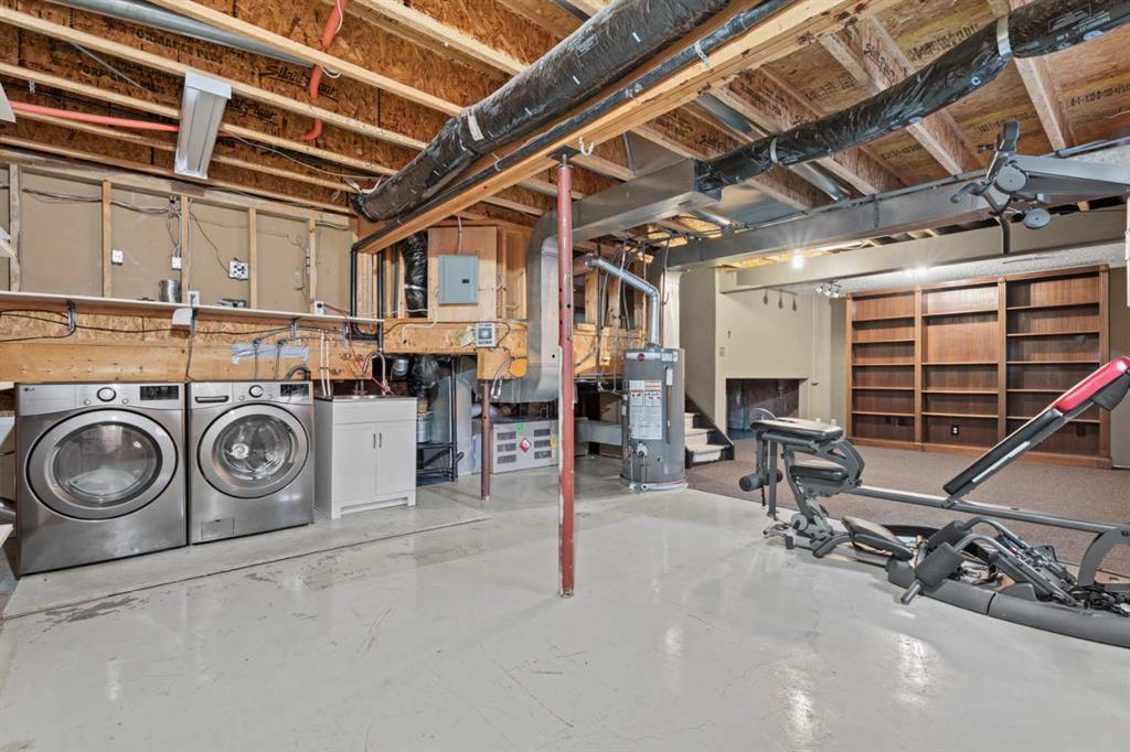 The basement provides great flexibility for a home gym along with a massive storage space for seasonal items and gear. The hot water tank is (2020) and the washer and dryer are nearly brand new!
