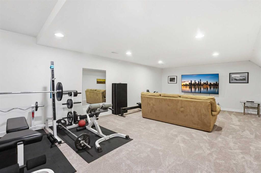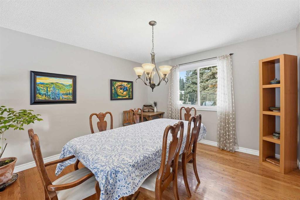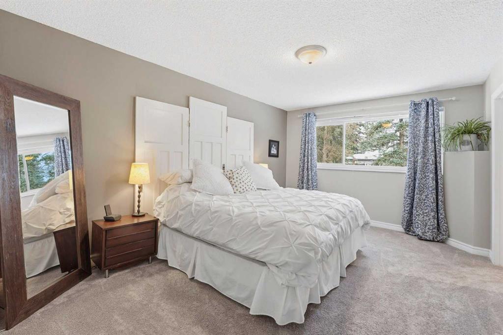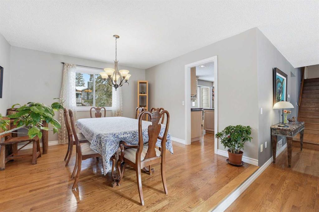 Welcome to a beautifully cared for family home nestled among the towering evergreens of Redwood Meadows where nature, space, and community come together. This inviting 2-storey residence offers over 2,500 sq ft above grade plus a fully finished basement, providing over 3,300 sq ft of developed living space on a nearly 16,150 sq ft lot. Warm and welcoming from the moment you arrive, the home features a new custom Oak front entry door and new garage door, leading inside to a thoughtfully designed layout with hardwood flooring and newer, luxuriously soft carpeting throughout. The main level offers exceptional versatility, highlighted by a sunken great room with a gas fireplace, an additional living room with a wood-burning fireplace, formal dining space, and a bright kitchen overlooking the private treed yard.