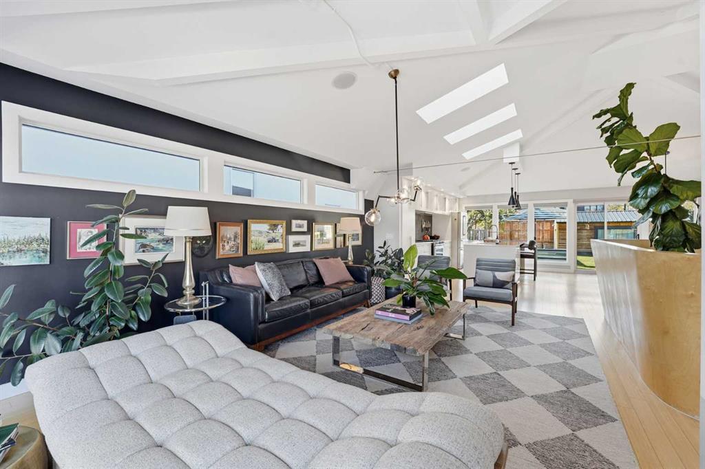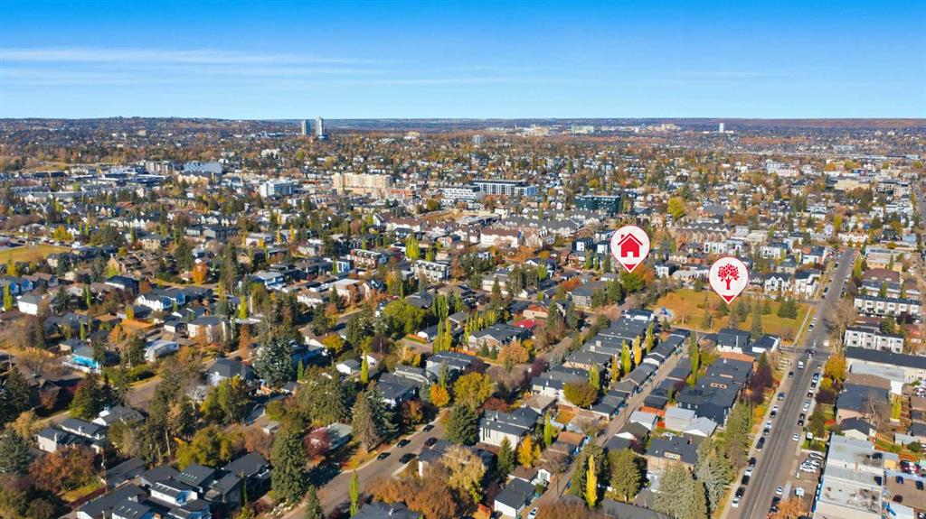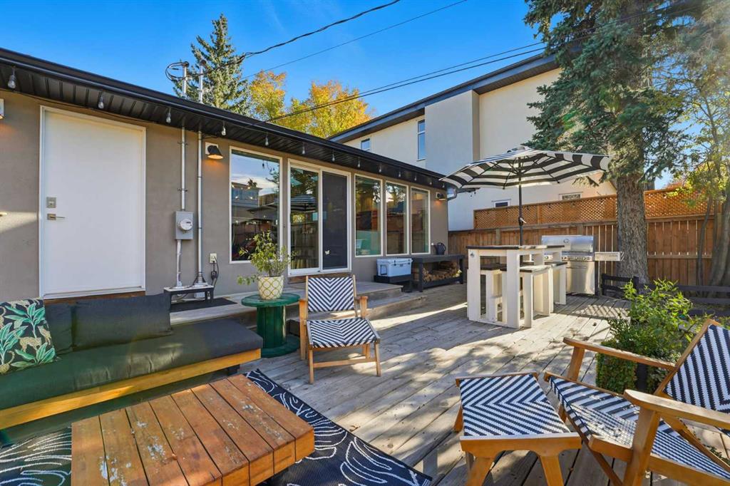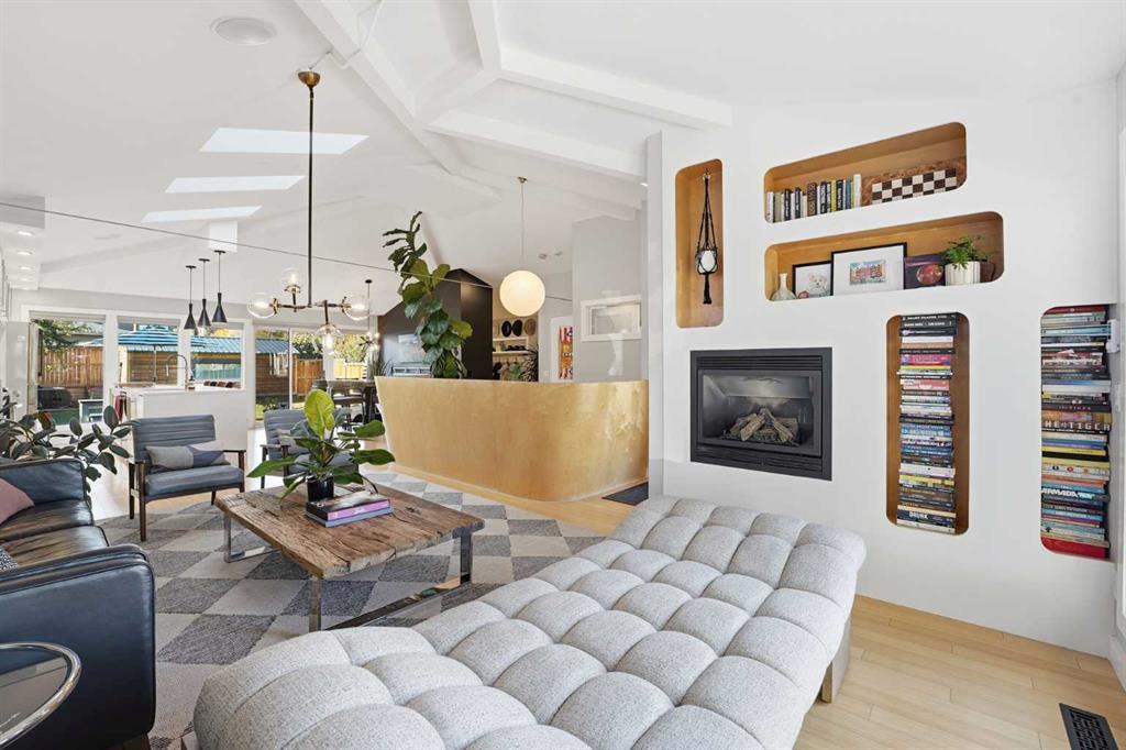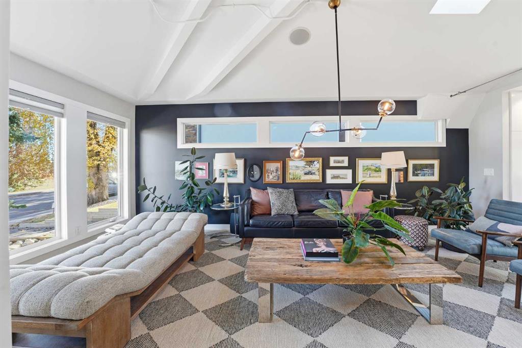 Perfectly positioned across from Kiwanis Park in Altadore, this fully renovated vaulted bungalow pairs modern design with everyday comfort. The striking curb appeal begins with a modern façade, low-maintenance landscaping and a welcoming front patio shaded by mature evergreens. Inside, soaring vaulted ceilings and sunny skylights create a bright, airy living room anchored by a gas fireplace surrounded by clever built-ins and shelving. Oversized windows capture leafy park views, while built-in speakers add ambience for relaxing or entertaining. The chef’s kitchen impresses with sleek full-height cabinetry, a designer tile backsplash, gas stove, stainless steel appliances and a waterfall-edge island perfect for casual dining or conversation. A wall of glass frames the backyard and floods the space with natural light, connecting seamlessly to the adjacent dining area where patio sliders open to the west-facing deck for effortless indoor/outdoor living. The main level continues with a showstopping creative studio featuring exposed wood beams, custom lighting and generous workspace ideal for design, art or a home office. A comfortable guest bedroom enjoys park views, complemented by a stylish powder room. Downstairs, the family-friendly layout continues with a large recreation room designed for movie and game nights. The spacious primary retreat features a built-in closet system and a luxurious ensuite with dual sinks and an oversized rain shower. Two additional bedrooms, each with large windows, share a modern 4-piece bathroom. The beautifully finished laundry area adds thoughtful function with built-in storage and folding space. Outside, a massive west-facing yard invites outdoor enjoyment with a huge deck for barbeques, lounge areas for warm weather gatherings and plenty of grassy play space for kids and pets to play. Comfort is ensured year-round with central air conditioning, on-demand hot water, a high-efficiency furnace and a water softener. Set on a corner lot within walking distance to River Park, Sandy Beach, and the boutiques and cafés of Marda Loop, this home embodies the best of Altadore living, design-forward, functional and outstandingly located! Open house Sat/Sun 12-2.