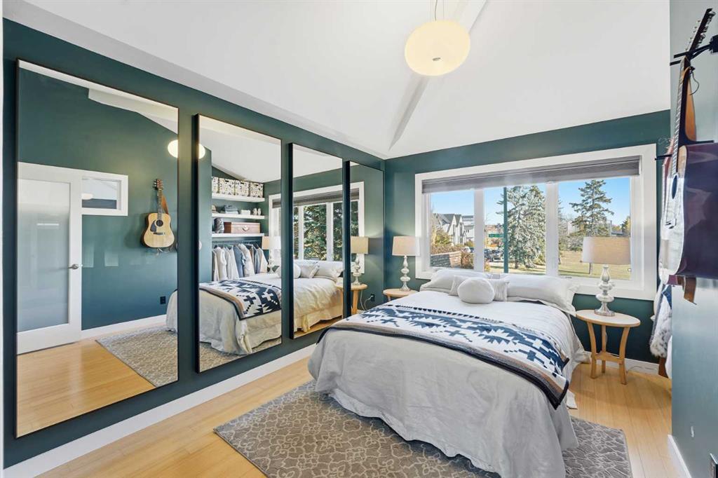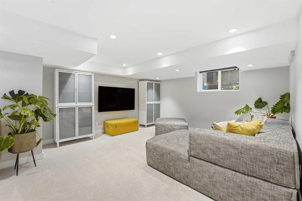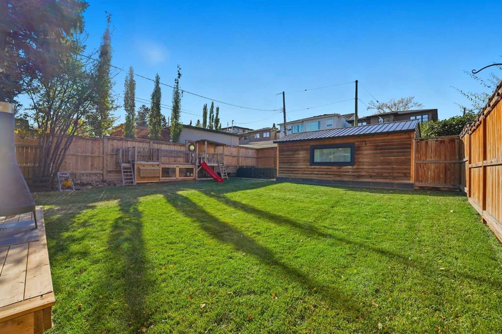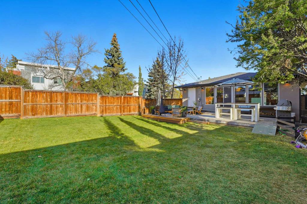 Perfectly positioned across from Kiwanis Park in Altadore, this fully renovated vaulted bungalow pairs modern design with everyday comfort. The striking curb appeal begins with a modern façade, low-maintenance landscaping and a welcoming front patio shaded by mature evergreens. Inside, soaring vaulted ceilings and sunny skylights create a bright, airy living room anchored by a gas fireplace surrounded by clever built-ins and shelving. Oversized windows capture leafy park views, while built-in speakers add ambience for relaxing or entertaining. The chef’s kitchen impresses with sleek full-height cabinetry, a designer tile backsplash, gas stove, stainless steel appliances and a waterfall-edge island perfect for casual dining or conversation. A wall of glass frames the backyard and floods the space with natural light, connecting seamlessly to the adjacent dining area where patio sliders open to the west-facing deck for effortless indoor/outdoor living. The main level continues with a showstopping creative studio featuring exposed wood beams, custom lighting and generous workspace ideal for design, art or a home office. A comfortable guest bedroom enjoys park views, complemented by a stylish powder room. Downstairs, the family-friendly layout continues with a large recreation room designed for movie and game nights. The spacious primary retreat features a built-in closet system and a luxurious ensuite with dual sinks and an oversized rain shower. Two additional bedrooms, each with large windows, share a modern 4-piece bathroom. The beautifully finished laundry area adds thoughtful function with built-in storage and folding space. Outside, a massive west-facing yard invites outdoor enjoyment with a huge deck for barbeques, lounge areas for warm weather gatherings and plenty of grassy play space for kids and pets to play. Comfort is ensured year-round with central air conditioning, on-demand hot water, a high-efficiency furnace and a water softener. Set on a corner lot within walking distance to River Park, Sandy Beach, and the boutiques and cafés of Marda Loop, this home embodies the best of Altadore living, design-forward, functional and outstandingly located! Open house Sat/Sun 12-2.