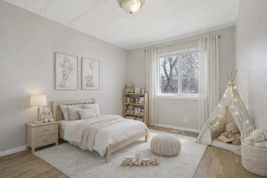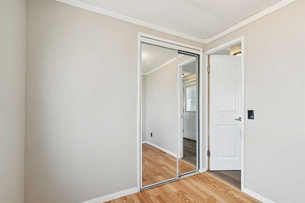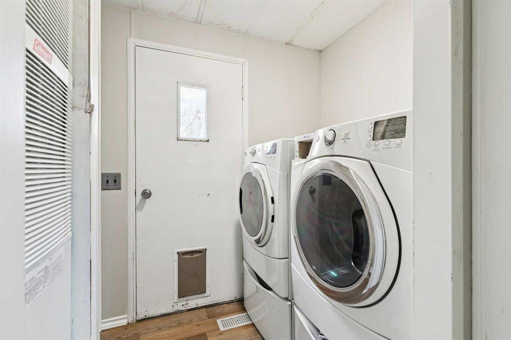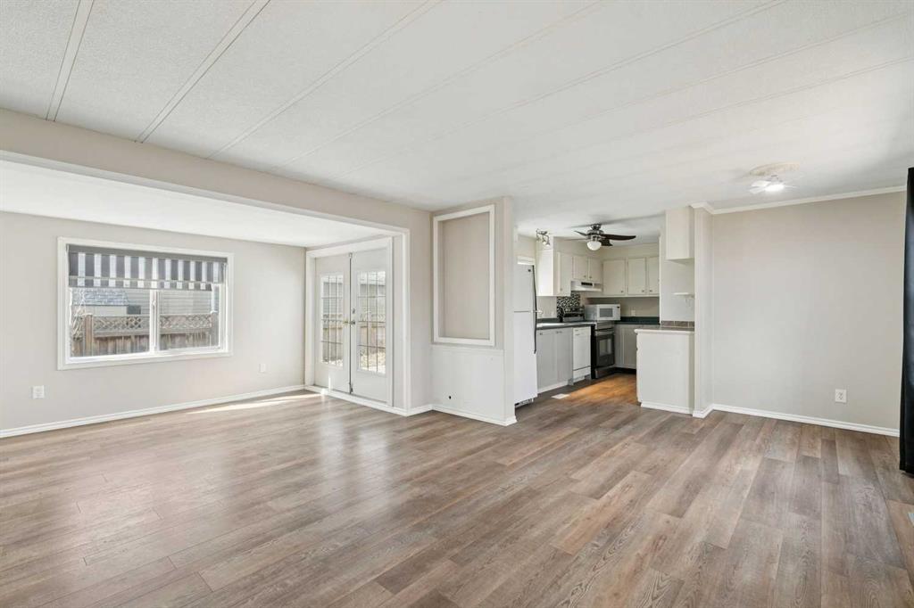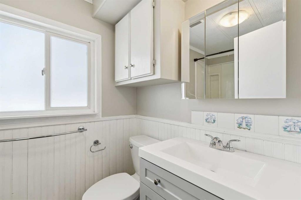 UPDATED KITCHEN, FLOORING & ENSUITE MAKE THIS MOVE-IN READY GEM A MUST-SEE! Welcome to this charming home tucked away on a quiet street, offering a perfect blend of comfort, functionality, and outdoor space. Step inside to a bright, open-concept layout where the kitchen seamlessly connects to a spacious living room with large windows that flood the space with natural light. The adjoining dining area creates an ideal setup for everyday living and entertaining. The main level features a generous primary bedroom with a refreshed ensuite (toilet, vanity, and flooring replaced in 2022) and easy access to the laundry room for added convenience. Two additional bedrooms, a full bathroom, and main floor laundry complete the level. Recent upgrades add real value, including fresh paint throughout, new lower kitchen cabinetry (2024), updated main area flooring (2024), and a newer stove (2023). Step outside through double doors to a large deck overlooking a private, tree-lined backyard. Fully fenced and beautifully maintained, this outdoor space also offers RV parking, perfect for added flexibility. Located in a quiet, established neighbourhood close to the Airdrie Rec Center, parks, pathways, and everyday amenities, this home is an excellent opportunity for first-time buyers, investors, or anyone looking for a well-rounded property in a great location. SOME PHOTOS ARE VIRTUALLY STAGED.