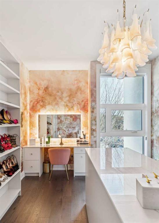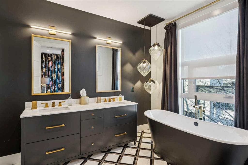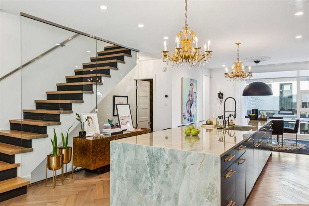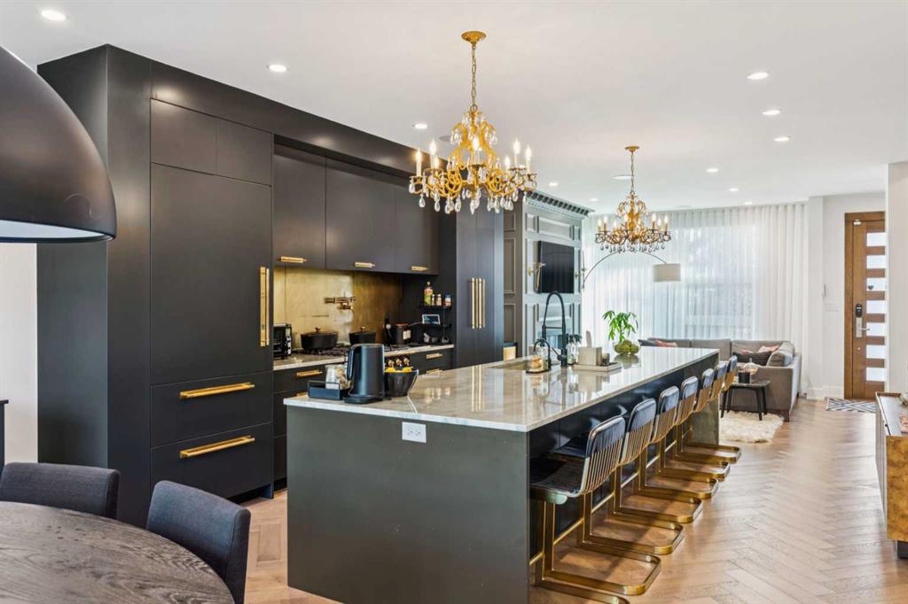 Exceptionally high-quality home in sought-after Parkhill, just a few doors from the Ridge Park with direct access to the Elbow River pathway system. Enjoy a walkable lifestyle minutes from the vibrant 4th Street Village, offering an endless array of shops, dining, and services, along with proximity to excellent schools. This stunning contemporary residence showcases impeccable craftsmanship and design with bespoke architecture by Marvin DeJong and an incredible array of upgrades. Brick, metal, and stucco create a striking curb appeal punctuated with a custom 2.5” solid oak and glass front door. Over 3,096 sq ft of developed living space including 4 bedrooms and 3.5 bathrooms. The totally open-concept main floor features high ceilings, exceptional natural light from the oversized front and rear windows and custom herringbone hardwood floors. The living room is anchored by a custom-panelled fireplace with “frame” television and soft floor-to-ceiling sheers. Truly incredible chef’s kitchen with extensive custom cabinetry, quartzite counters and a massive “waterfall” island with seating. Top appliances include: a La Cornue gas stove, Subzero fridge plus 2 fridge drawers, 2 Subzero freezer drawers, 2 Subzero wine fridges, 2 dishwashers and a custom fabricated quartzite sink. The generous dining area with designer lighting and built-in storage overlooks the rear yard . A heated-floor mudroom with excellent storage and a discreet, elegant powder room complete the main level. Striking staircase with glass wall and solid wood treads leads to the upper floors…no carpet in the home. The primary suite features blackout drapery, wall-mounted TV and a well-organized walk-in closet. The spa-inspired ensuite showcases heated and custom marble flooring, designer lighting, Kateryn cast iron soaking tub, zero-threshold shower with steam, water closet with Japanese bidet toilet and a large double vanity with honed marble counter and Restoration Hardware fixtures. The balance of the second level includes two bright bedrooms (one currently used as a dressing room), a spacious family bath and a walk-in laundry room with sink and storage. The top-floor holds a large studio space with amazing light quality. Also an office area with access out to a large and private terrace. The fully finished lower level offers heated hardwood floors, a media space, games room, work station, bedroom and a full bath. Outdoor living is equally impressive, with a front terrace and rose garden and a sunny west-facing and low-maintenance back yard with multiple patios. Additional highlights include a smart home system that will control Lutron lighting, temperature and security. Also irrigation and Gemstone exterior lighting. The fully finished and heated double garage has 2 EV chargers and a paved alley. This exceptional property must be seen to be appreciated.