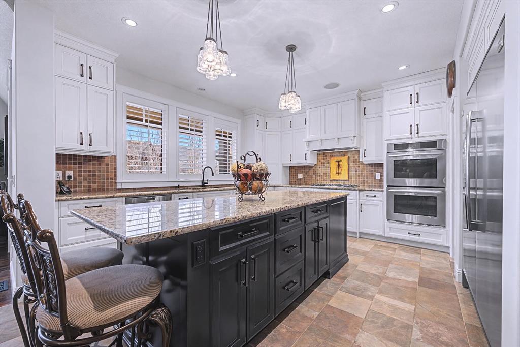 The heart of the home is the gourmet kitchen—a dream for both chefs and entertainers. Outfitted with built-in stainless steel appliances including a Frigidaire Professional dual-door fridge, JENN-AIR gas cooktop & oven, and MIELE dishwasher, this kitchen blends functionality and beauty. A massive island, granite countertops, and warm wood shaker cabinets elevate the space, while the massive walk-in pantry ensures everything has a place.