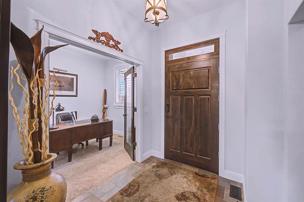 Inside, the wow-factor continues. This home has been immaculately maintained and offers refined touches throughout—from soaring vaulted ceilings to custom built-ins and premium finishes. The grand foyer welcomes you with space and warmth. To one side, a private office with custom cabinetry. To the other, a spacious mudroom with a walk-in closet designed for busy lives.