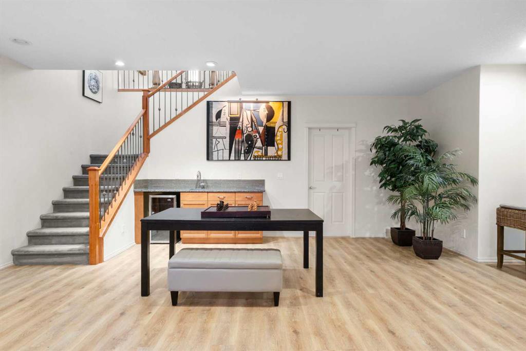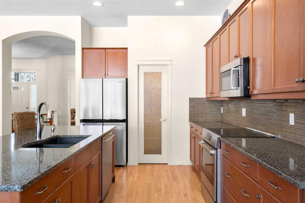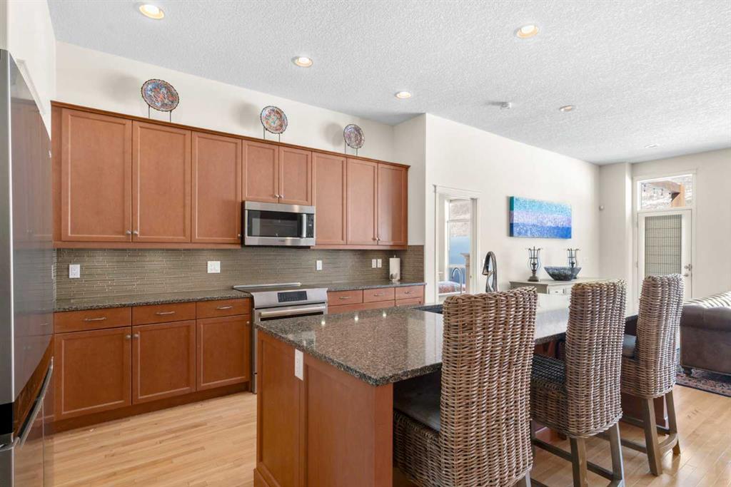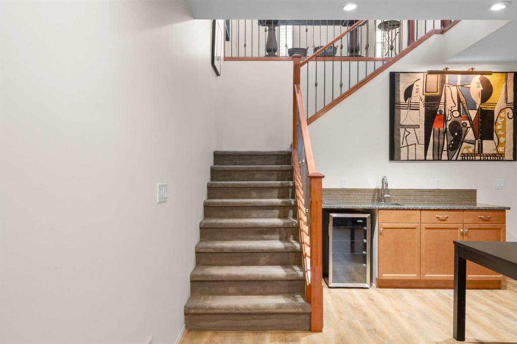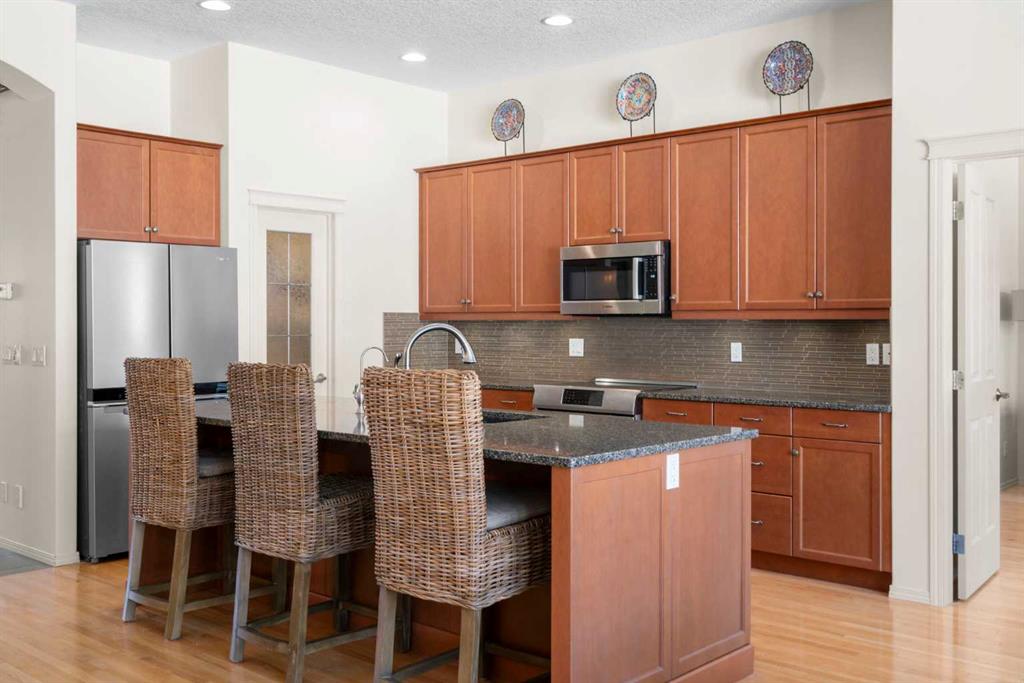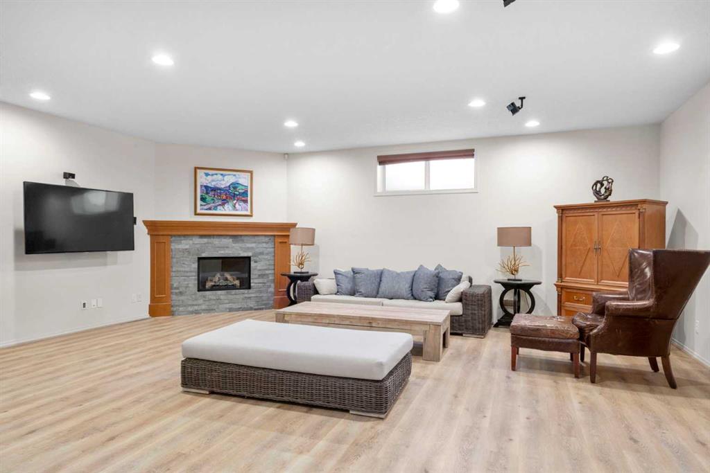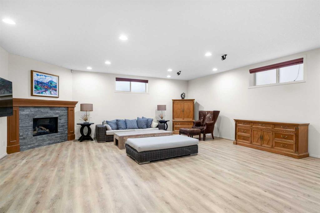 Experience the perfect blend of luxury, privacy, and family friendly design in this stunning Discovery Ridge bungalow, ideally situated at the quiet end of the boulevard, backing directly onto tranquil green space, steps to Griffith Woods Park. This Morrison built home offers nearly 3,460 sq ft of thoughtfully crafted living space, with soaring 10 foot ceilings, rich hardwood and ceramic tile floors, and expansive windows that flood the interior with natural light while framing serene views of prairie grasses and lush landscaping. The open concept main floor is anchored by a warm fireplace surrounded with built-ins. Featuring a versatile front room perfect as a formal dining area or home office with double French doors including bevelled glasss. The chef inspired kitchen dazzles with granite countertops, a massive central island with breakfast bar, premium stainless steel appliances, a walk-in pantry, subway tile backsplash, and a sunny breakfast nook that flows effortlessly to a large private deck with BBQ gas hookup for entertaining. Practical family living is enhanced with a mudroom and main floor laundry connecting to the oversized double garage – the front driveway is extra wide, easily accommodating a third car width. The primary retreat is a true sanctuary with a spacious layout, walk-in closet, and spa-inspired 5-piece ensuite featuring dual vanities, soaker tub, and separate shower. Additional main-floor living spaces include a 2 piece powder room, massive family room and open dining area with hutch cutout., and the front den. The fully developed basement expands the home’s versatility with a massive recreation room, wet bar with beverage fridge, cozy second fireplace, two large bedrooms, full bathroom with heated tile floors, and a flexible media or exercise room, offering space for family, guests, and entertaining. Outside, the professionally landscaped backyard backs onto a private reserve, creating a private oasis with manicured gardens, a statement pergola, and expansive tiered decks, perfect for summer gatherings or peaceful reflection. The home’s location provides the closest experience to mountain living within city limits, yet remains minutes from Signal Hill Shopping, Stoney Trail, premier golf at Elbow Springs, Pinebrook and the Glencoe G&CC, and quick and easy downtown Calgary and mountain access . Blending timeless craftsmanship, thoughtful design, and luxurious upgrades – including soaring ceilings, custom millwork, designer lighting, and seamless indoor / outdoor flow – this exceptional bungalow represents the ultimate Discovery Ridge lifestyle, offering unparalleled privacy, comfort, and elegance in one of Calgary’s most coveted west end communities, a true sanctuary where cherished memories and everyday joy await.