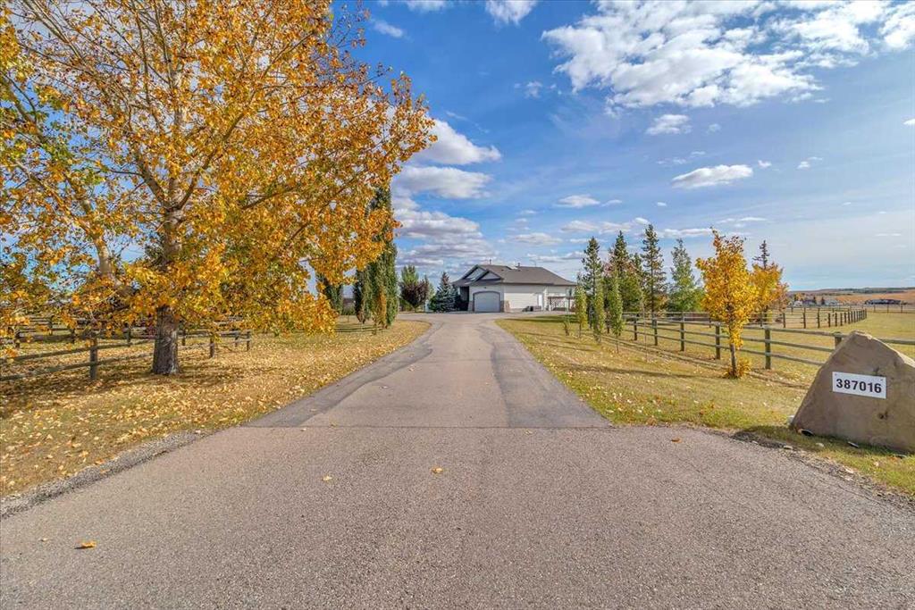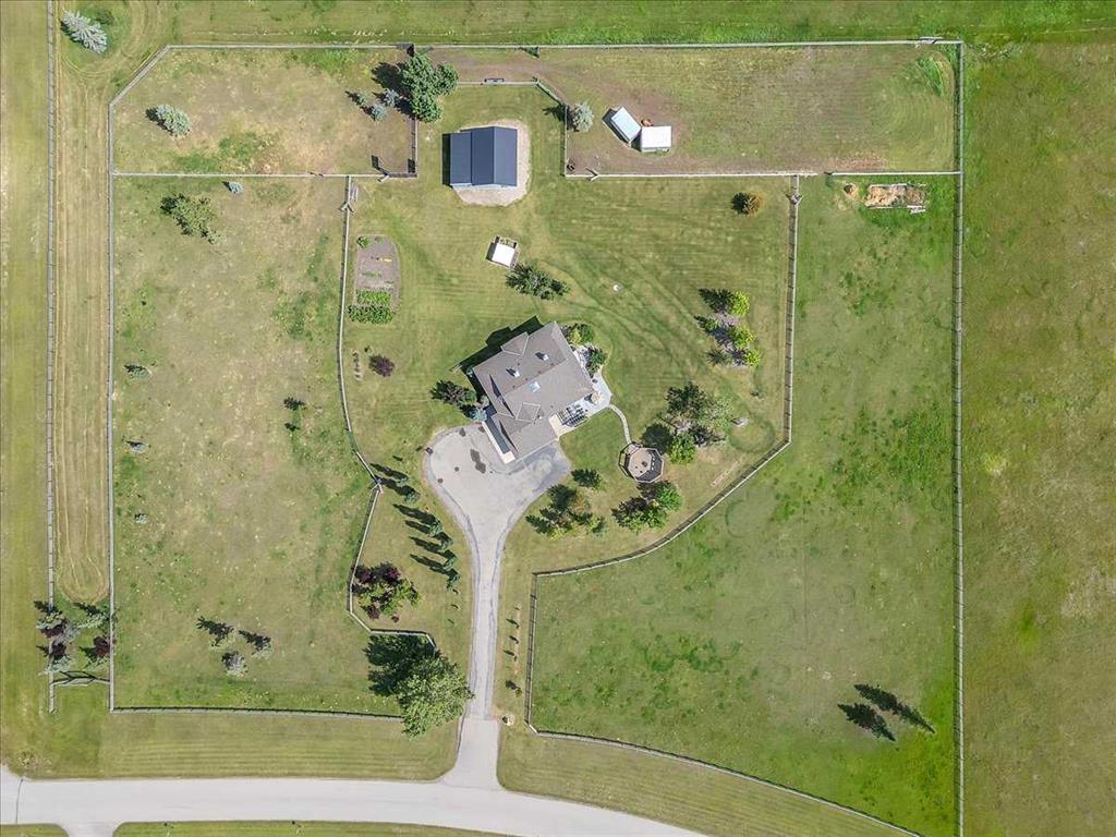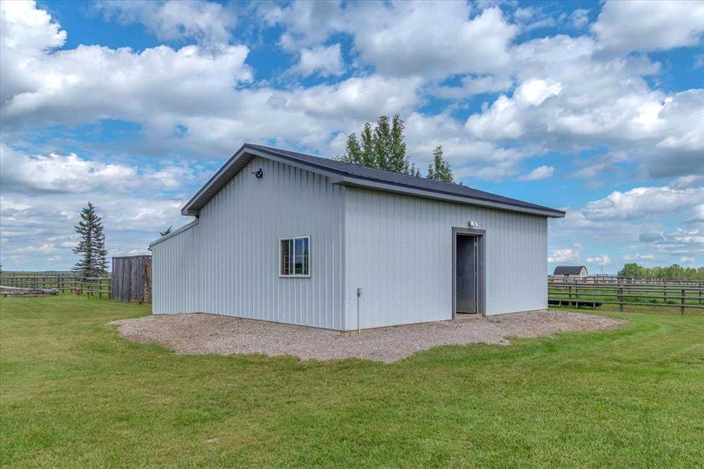 Step right into a world where rural serenity meets urban accessibility-just minutes to Okotoks! Nestled in a picturesque sub-division with southwest views including mountain views, this beautiful acreage is a haven for horse lovers and offers 4.25 acres which are fenced and cross fenced with post and rail fencing giving it a unique charm. This perfect setting features a walk-out bungalow with over 2500 sqft of developed living space in an open floorplan, vaulted ceilings, 2 beds up and 2 down, air conditioning and paved drive right to the front step. Along with a barn that comes with 2 stalls, a tack room, horse shelters and additional storage, this beautiful equestrian community is bordered by 8 acres of reserve and riding trails including 10m wide riding trails throughout the subdivision making this a dream location for equestrians and those looking for additional space. Inside, this welcoming home offers an open concept layout with vaulted ceilings, skylights that flood the home with natural light, a cozy fireplace and doors that lead out to the south facing deck from which to enjoy the breathtaking views of the foothills. The open kitchen, dining and living room are great for entertaining and the master bedroom with 5 pc ensuite and extra bedroom and 4 pc bath complete the main floor living space. You will appreciate the curved staircase that leads down into the bright walk out basement, featuring two bedrooms, 4 pc bath, in floor heating, a large family room with gas fireplace and a functional wet bar makes for another great space to entertain your family and friends. Outside, a private patio off the walkout basement provides a serene retreat, while on the west side you will find another extra patio area where you can soak in the sun and enjoy the mountains. The charming firepit area adds warmth and character to the outside space. You will find the perfect blend of outdoor living while close to Okotoks in this unique and beautiful space! (Private and public school buses come to the door)