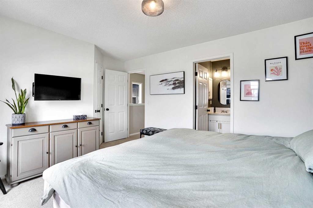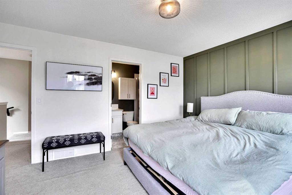 From the moment you walk in, you’ll feel it—this is a home that just feels right. Warm, welcoming, and full of personality, it’s the kind of space where you can truly see yourself settling in and making memories. The morning light pours through the large windows in the living room, dancing across freshly painted walls and illuminating every thoughtfully updated detail. A cozy gas fireplace anchors the space, creating a perfect spot to gather on winter evenings or relax after a long day. This home has been lovingly cared for and transformed with an artist’s eye. The owner, a professional painter, has given every surface new life—from the walls and trim to the cabinetry and custom millwork. The kitchen is a standout feature, fully refreshed with a new backsplash, refinished cabinets with modern hardware, and a charming board and batten finish on the island that adds warmth and character. The dining room carries its own sense of style, thanks to designer wallpaper and an upgraded light fixture that makes even everyday meals feel special. Upstairs, you’ll find three comfortable bedrooms, each with new blinds and a calm, restful feel. The primary suite features a custom board and batten accent wall, making the space feel tailored and serene. Two full bathrooms upstairs—one an ensuite—make morning routines easy, and the upper-floor laundry adds everyday convenience. The basement is unfinished, offering you the opportunity to expand and customize the space to fit your needs—whether it’s a playroom, home office, or future guest suite. Outside, the backyard has been fully fenced, giving kids and pets room to run freely. The back deck has been refinished with a new railing and stain, creating a great space for weekend barbecues or quiet evenings under the stars. There’s also a gravel parking pad with alley access, leaving room for a future garage if desired. Located in the heart of Cranston, you’re just a short walk from the Bow River’s scenic trails and Cranston Market, where you’ll find Sobeys, a cozy coffee shop, pet store, local pub, medical clinic, gas station, and more. Everything you need is right here, all wrapped up in a vibrant, family-friendly community with schools and parks just minutes away. This is more than a house—it’s a fresh start, a place to grow, and a home that’s been truly prepared for someone new to love it. That someone might be you.