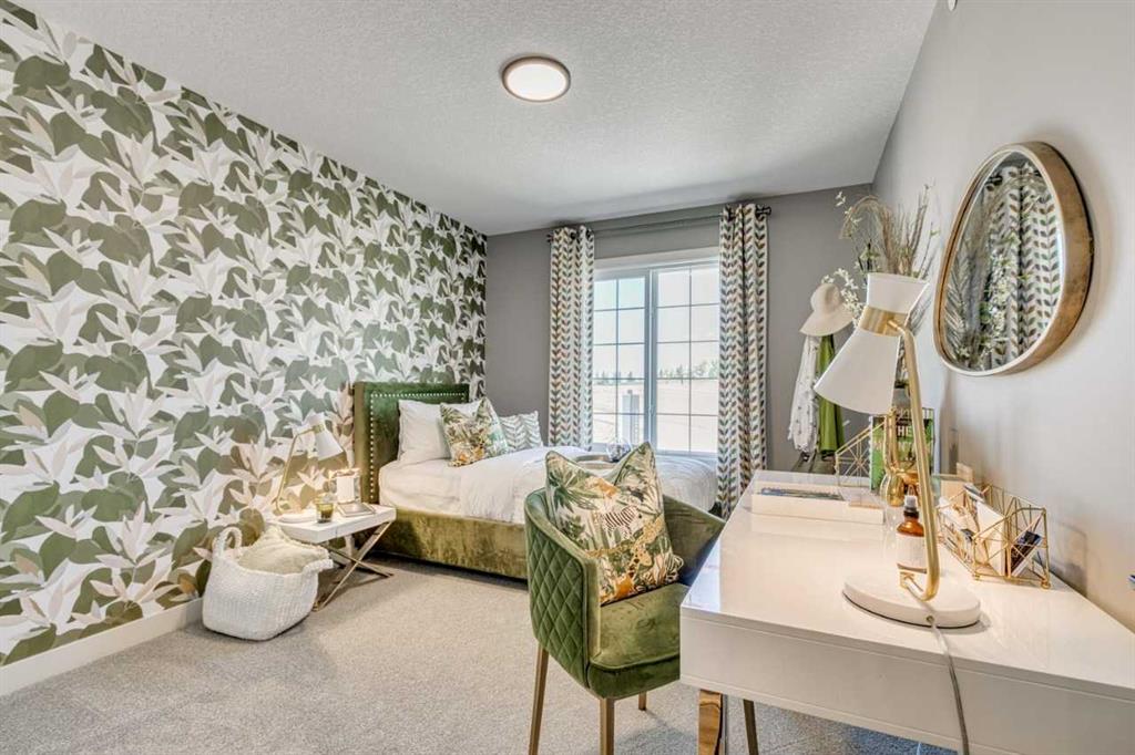 Built by Sterling Homes, this home showcases on-trend, designer-curated interior selections tailored for a home that feels personalized to you. The executive kitchen is beautifully appointed with built-in stainless steel appliances, gas cooktop, fridge with water and ice dispenser, waterfall island, pendant lighting, pots and pans drawers, waste bin pullout, Silgranit sink, and a walk-through pantry. The main floor offers a versatile flex room, a spacious mudroom with built-in bench and coat hooks, and a striking great room with open-to-above ceilings and an electric fireplace. Upstairs, enjoy a well-designed layout with a luxurious 5-piece ensuite featuring a tiled shower, tile flooring, and a bank of drawers. Additional highlights include LVP flooring throughout the main floor, main bath, and laundry, quartz countertops with undermount sinks, paint grade railing with iron spindles, and extra windows for abundant natural light. This energy-efficient home is Built Green certified and includes triple-pane windows, a high-efficiency furnace, and a solar chase for a solar-ready setup. Home includes blower door testing for energy efficiency, plus an electric car charger rough-in, it’s designed for sustainable, future-forward living. Featuring smart home technology, this home includes a programmable thermostat, ring camera doorbell, smart front door lock, smart and motion-activated switches—all seamlessly controlled via an Amazon Alexa touchscreen hub. Plus, your move will be stress-free with a concierge service provided by Sterling Homes Calgary that handles all your moving essentials—even providing boxes! Photos are a representative.