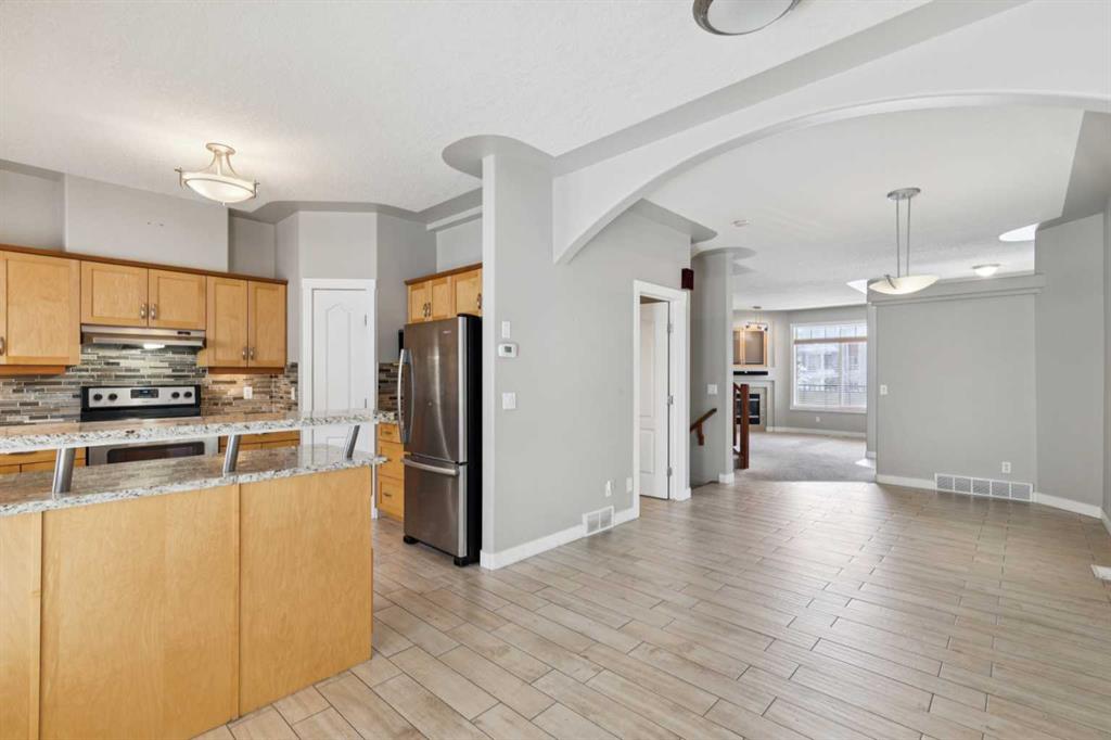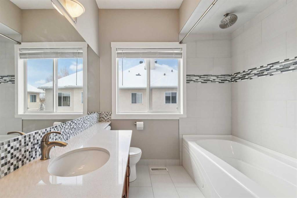 Set in the established community of Signal Hill, this fully renovated 3-storey townhome in “The Landings” offers over 2,000 sq ft of updated living space, a walkout lower level, and a quiet setting backing onto green space. The main floor has been thoughtfully opened up to create a more connected and functional layout. Large windows bring in natural light throughout the day, while the living room is anchored by a gas fireplace that adds warmth and definition to the space. The kitchen blends style and practicality with granite countertops, stainless steel appliances, ample cabinetry, and a central breakfast bar that naturally connects to the dining area and south-facing deck. Upstairs, the layout is both rare and highly functional, with two true primary bedrooms—each complete with its own ensuite and walk-in closet. Vaulted ceilings and a skylight add to the sense of space, while upper-level laundry keeps day-to-day living efficient. The walkout lower level extends the living space with a versatile family or media room, direct access to a private patio, and a seamless connection to the surrounding green space. Extensive updates have already been completed, including a new roof (2025), new hot water tank (2024), new garage door (2024), and a full interior renovation featuring updated flooring, bathrooms, and an opened-up main floor. Additional features such as heated flooring in the primary bath, built-in closet shelving, and a water filtration system add comfort and long-term value. Located in a well-managed complex just minutes from schools, shopping, parks, and major routes, this home offers a rare combination of updated interior, functional layout, and a quiet, established setting in one of Calgary’s most desirable west-side communities.