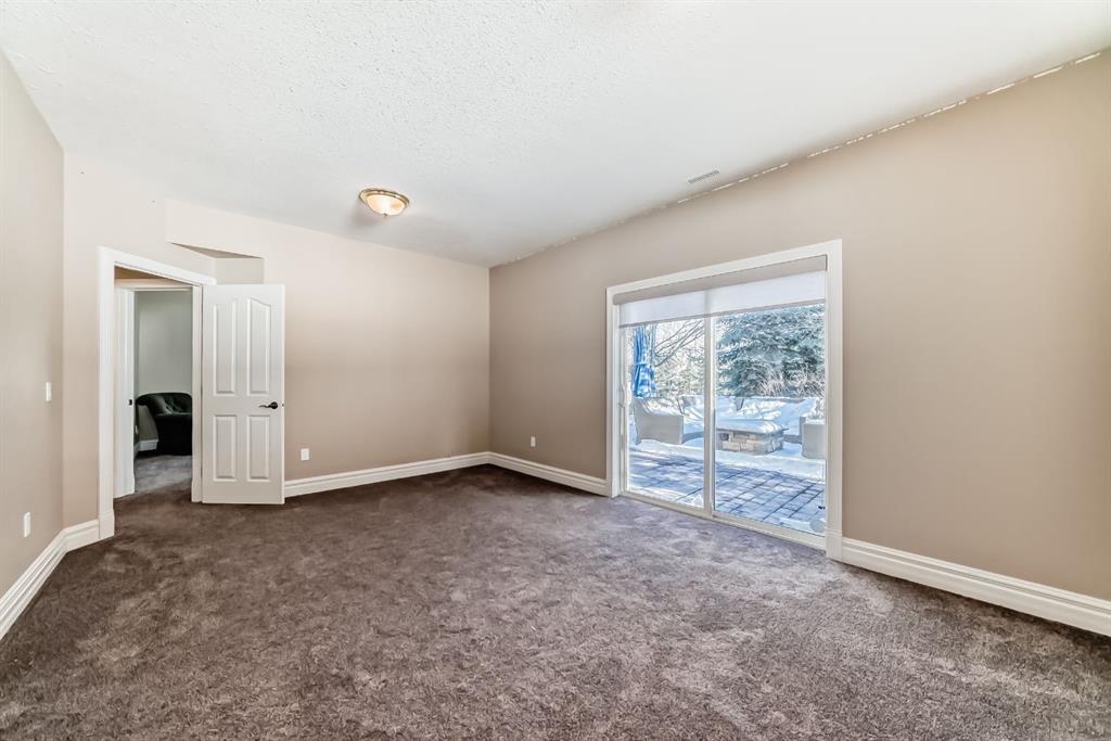 The basement boasts 9-foot ceilings, 4 additional bedrooms, and a full bathroom—ideal for larger families or multi-generational living. The expansive recreation room includes oversized windows, a wet bar, & a 2nd fireplace with custom built-ins. The walkout sliding door accesses a beautiful large concrete patio to sit among the trees. There’s also a generous storage room & an under-the-stairs playroom—perfect for kids or additional storage.