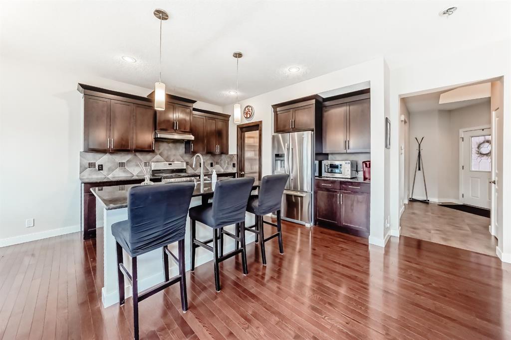 Welcome to 393 River Heights Drive — a warm and inviting Calbridge-built family home that offers space, comfort, and incredible value in one of Cochrane’s most loved neighbourhoods. Thoughtfully designed with family living in mind, this home features a bright, open layout, generous room sizes, and timeless details throughout. Step inside to a cathedral-style entryway with elegant tile flooring, leading into the main floor with 9 ft ceilings and a welcoming great room centered around a gas fireplace with stone surround and mantle. The island kitchen is the heart of the home, featuring granite countertops, stainless steel appliances, a gas stove, and a convenient walk-through pantry that connects to the mudroom and laundry area. A 2-piece bath completes the main level. Upstairs, you’ll find a spacious bonus room wired for surround sound, perfect for family movie nights, plus a large office nook that fits a full-sized desk. The second and third bedrooms are bright and roomy, giving everyone their own comfortable space. The primary suite is a true retreat, with a feature wall, space for a king-sized bed, and a luxurious 5-piece ensuite complete with double vanities, a soaker tub, separate shower w/ tile surround, walk-in closet, and linen closet. Downstairs, the finished basement adds extra flexibility with a fourth bedroom, rec rm/media area, office nook, and bathroom rough-in — ideal for guests, hobbies, or future development. Outside, enjoy your Duradeck deck with aluminum railing & gas line, perfect for BBQs and summer evenings. The double attached garage features an 8’ door, and is insulated and drywalled for year-round use. While a few minor touch-ups would bring this home to its full shine (such as some cabinetry touch ups and cosmetic updates), they’ve been thoughtfully accounted for in the price — leaving plenty of room to personalize and add your finishing touches. Located near schools, parks, playgrounds, and Cochrane’s beautiful River pathways, this home offers the perfect balance of space, comfort, and community. Book your viewing today!