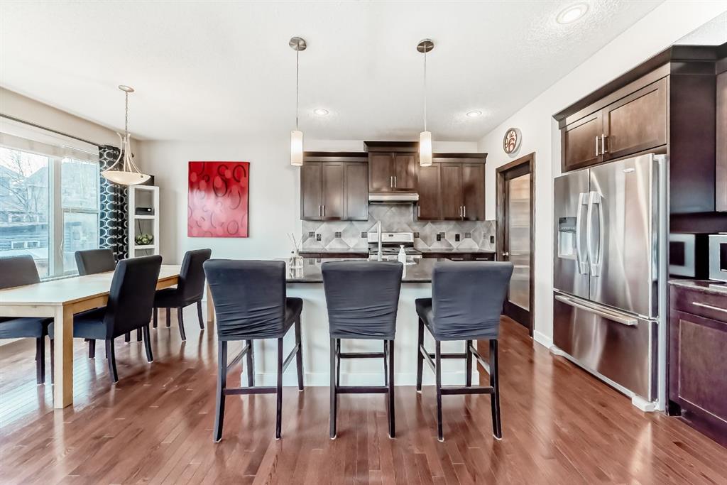 Built by Calbridge Homes and set on a quiet, family-friendly street in one of Cochrane’s most loved neighbourhoods, this home offers the space, comfort, and layout that just makes sense. From the moment you walk in, it feels welcoming. The front entry is bright and open with a cathedral ceiling, and the main floor flows beautifully with 9-foot ceilings, a cozy gas fireplace, and plenty of room to gather without feeling crowded.