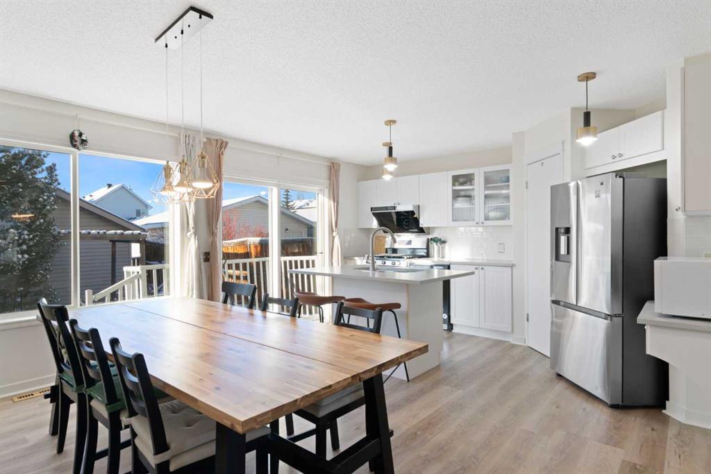 Open house from 1:00pm to 4:00pm on Saturday & Sunday (Jan 31 & Feb. 1st). Welcome to this well-maintained home with mountain views from upstairs bedrooms and west facing backyard located in the highly sough-after community of Tuscany. Perfectly located just 8 minutes walking distance to the Tuscany LRT station and 3 minutes driving distance to schools, and community amenities. When opening the front door, you are immediately impressed with railing stairs, new thorough vinyl plank flooring (2022), newly painted walls (2022), and open concept layout with a bright east facing living room, a 3-sided gas fireplace, large dinning area with a large window and can easily accommodate a larger table to enjoy with family and friends in holiday time, a modern kitchen with large patio doors leading directly to a deck to the backyard for outdoor entertaining, a nice island, updated gas stove (2022), FOTILE wall mount range hood (2022), white cabinetry, quartz countertops (2021), corner pantry and newer SS refrigerator (2022), and a 2-piece bathroom for guests to complete the main floor. The upstairs provides an east facing primary bedroom with two big picture windows to take in the morning sunshine, a walk-in closet, and a 4-piece En-Suite, another two west facing bedrooms with gorgeous mountain views, and a family 4-piece bathroom. The basement is half finished with vinyl plank flooring and has lots of potential to renovate in the future. The double detached garage is deep enough to fit a full-sized truck. The west facing landscaped yard includes a deck, lower patio, and a gazebo for kids or pets to play during evening entertaining time. Other recent updates include Roof (2020), Hot Water Tank (2020), Dishwasher (2021) and Washer (2019). Tuscany offers a great community life, and amenities including the Tuscany Club with ice ring, tennis courts, splash water park. Grocery stores, playgrounds, schools, walking/biking paths, golf, LRT Station. Easy access to major commuting routes such as Crowchild Trail and Stoney Trail to U of C, Downtown, COP and National Parks etc. Call now for your own viewing!
