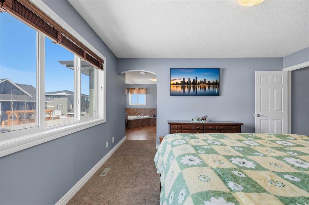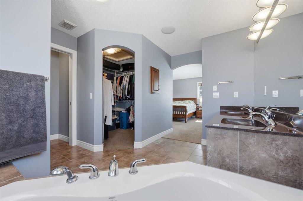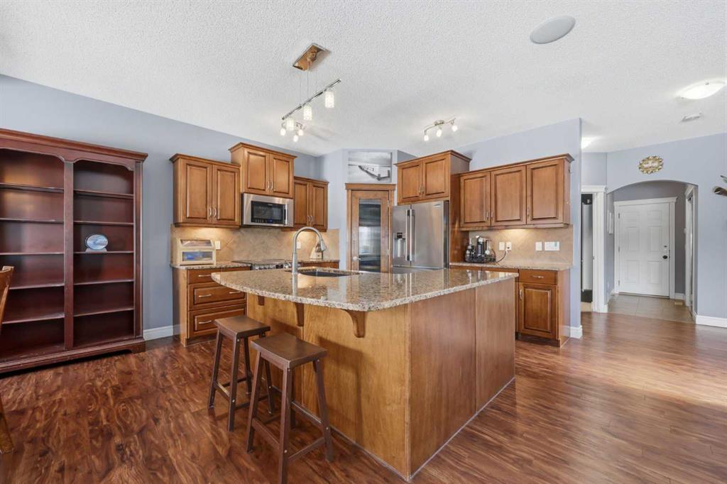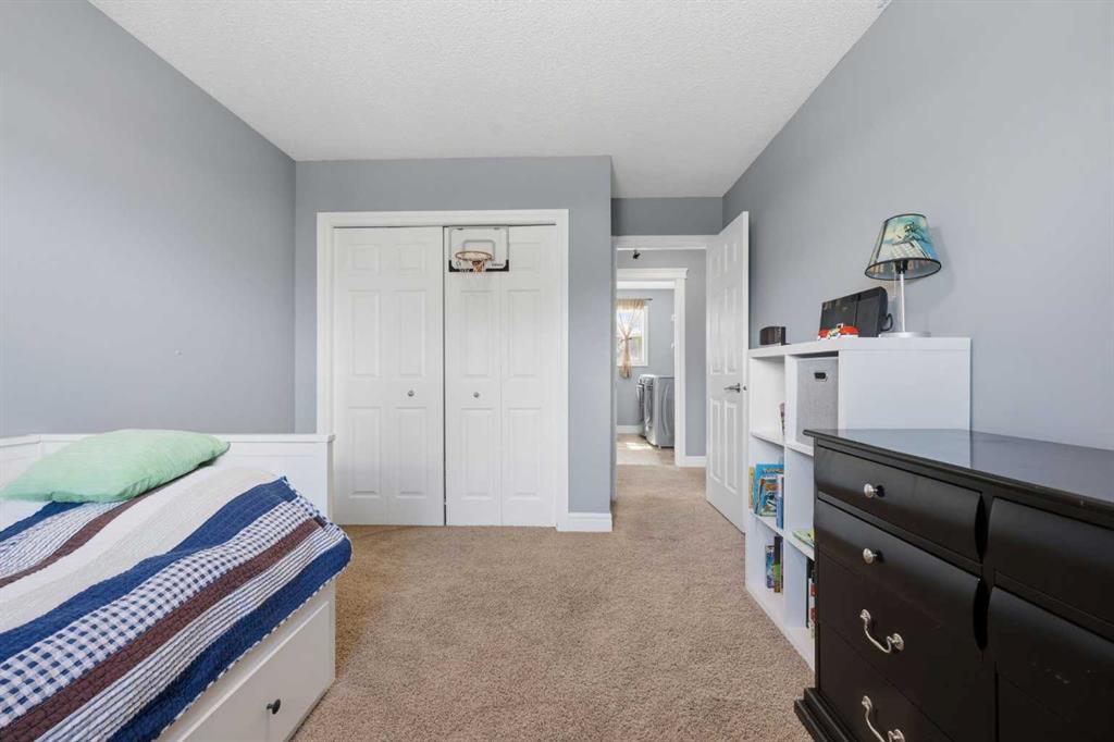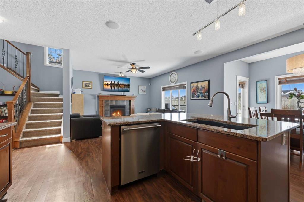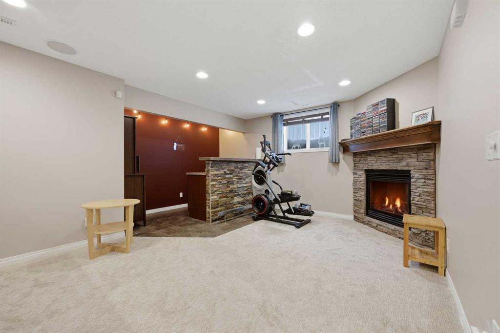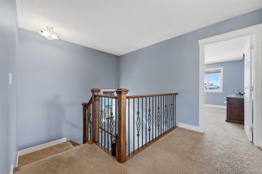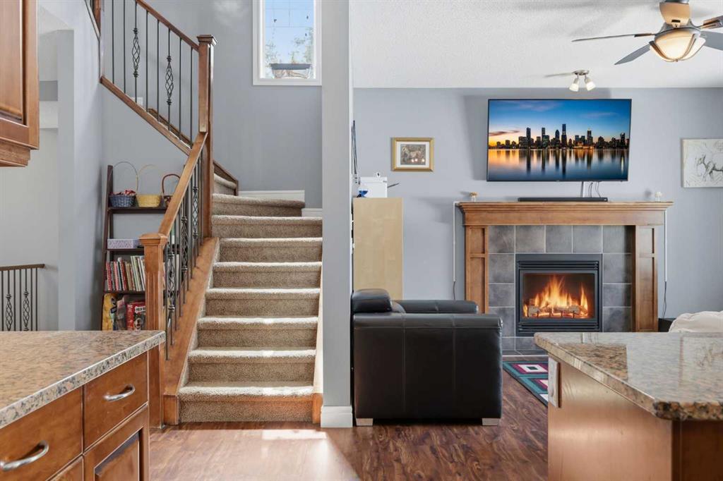 Stepping inside the front door, you’re greeted by a spacious front entry with a massive walk-in closet (a rare and genuinely useful feature), plus a dedicated main floor office. The kitchen is functional, featuring stone countertops, a large pantry, and new high-end appliances, all tied together with laminate flooring across the entire level. This home leans into entertaining, with a built-in speaker system that flows from the interior to the backyard deck. Upstairs, you’ll find FOUR generously sized bedrooms, including a primary retreat with a walk-in closet and a five-piece ensuite as well as a BONUS area and a 5-piece bath. The fully developed basement adds real flexibility—complete with a FIFTH bedroom, full bathroom, and a comfortable rec space with a wet bar and second fireplace. Central A/C, two hot water tanks, and a DOUBLE ATTACHED, HEATED garage are already in place. Located close to schools, shopping, playgrounds and pathways, with the added bonus of green space right next door, this is a solid, move-in-ready option in one of Airdrie’s most family-friendly communities.