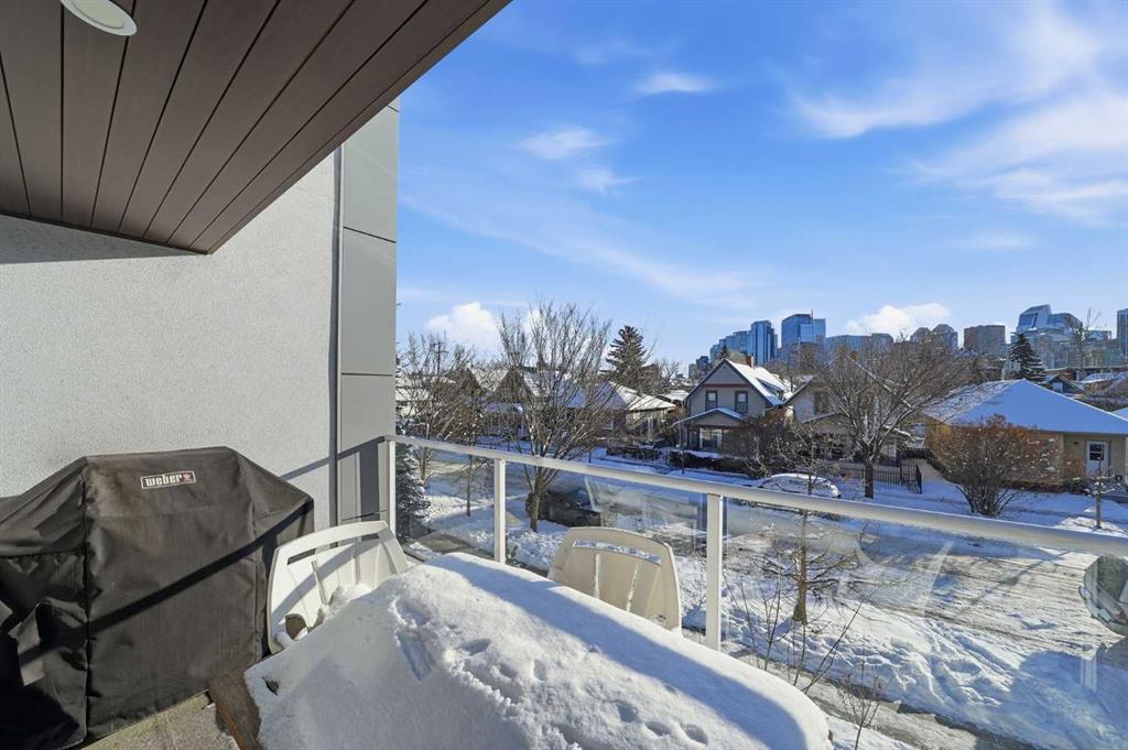 Unique opportunity in the heart of Sunnyside, just steps to the LRT, Safeway, the shops and restaurants of Kensington, Bow River pathways, and a quick walk into Downtown! This rare three-bedroom condo offers the perfect blend of inner-city convenience and comfortable living, all in a beautifully renovated, move-in-ready package. Flooded with natural light, the unit features a newly updated south-facing balcony where you can soak up the sun while enjoying spectacular downtown skyline views: the ideal spot for your morning coffee or evening unwind. Inside, the inviting living room is anchored by a real wood-burning fireplace with gas log lighter, creating a warm and cozy atmosphere that’s hard to find in condo living. The modern kitchen overlooks the spacious dining and living areas, making it perfect for entertaining or everyday living. Thoughtfully designed, the private rear wing of the unit offers three generous bedrooms, including a primary retreat complete with a convenient two-piece ensuite. Additional highlights include in-suite laundry, dedicated in-suite storage, and an exceptional layout that maximizes both function and flow. Whether you’re walking to work, biking along the river, or enjoying everything Kensington has to offer, this is truly inner-city living at its best. Nothing to do but move in and enjoy; don’t miss this rare opportunity!