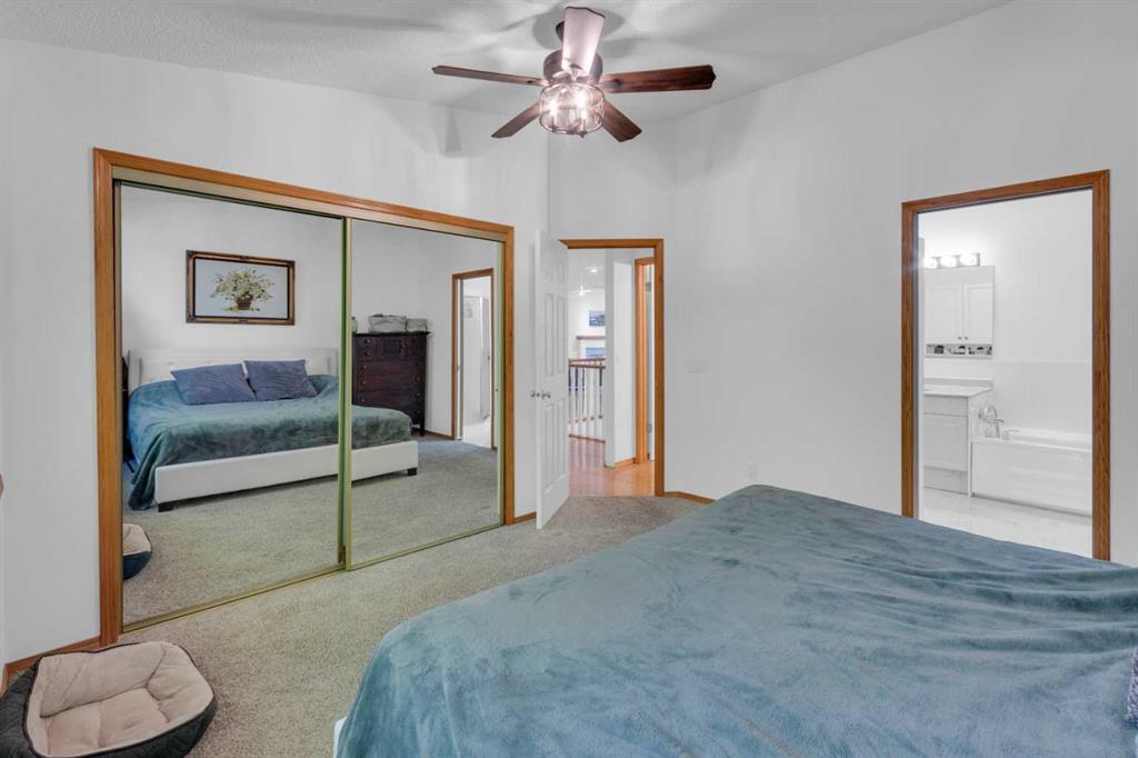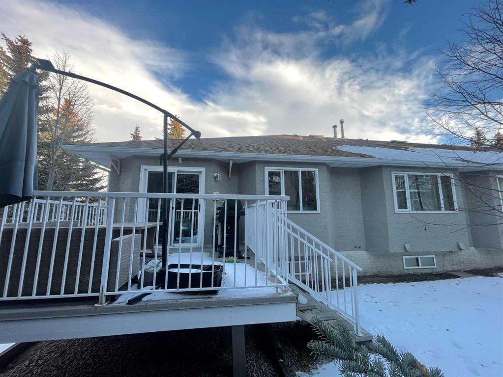 END UNIT BUNGALOW STYLE VILLA with double attached garage located in desirable Christie Gardens complex! This property is in fairly original condition needing upgrading and is a GREAT OPPORTUNITY for someone to do a partial or full scale renovation. With a total of over 2600 ft2 of living space, this property has lots of space to work with! It offers a PRIVATE AND QUIET LOCATION at the end of the cul de sac with mature trees surrounding it. OPEN MAIN FLOOR PLAN with VAULTED CEILINGS and large centre skylight which floods the living area with NATURAL LIGHT! Main floor has 2 bedrooms plus an office/den with built in desk and shelves. Spacious primary bedroom features a 5 piece ensuite bath with air jetted tub and separate shower. Spacious white kitchen with breakfast nook opens onto SUNNY, SW exposed back deck surrounded by trees for PRIVACY. Fully developed basement includes large rec room with built in shelving, 3rd bedroom (note: window is not egress size), full bath, laundry and plenty of storage. One of the storage rooms could be used as a wine cellar with built in sink and shelves, plus a cold room attached. GREAT LOCATION within walking distance of the Sirocco LRT station, West Market Square, Sunterra Market, and featuring many walking/biking trails just minutes away. Great access to schools, shopping, downtown and west to Kananaskis, Banff and the Rocky mountains. This home offers an easy “lock and leave” lifestyle at an unbeatable value! It’s been a few years since any unit has sold for less than $600K in this complex!