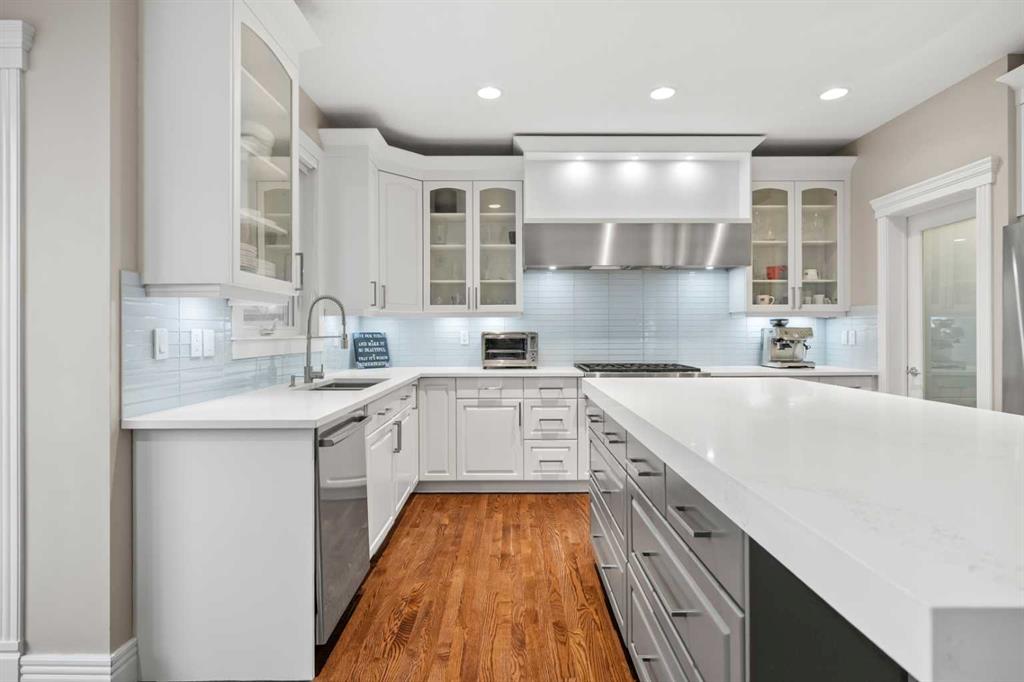 Welcome to 4 Heritage Lake Close, a show-home worthy estate nestled within the prestigious enclave of homes surrounding the ‘Lake at Heritage Pointe’- the only portion of the hamlet with lake privileges. Situated on a desirable corner lot within a serene cul-de-sac, this custom-built estate is just steps from the upper lake and main lake, offering prestige and lake access living, moments from your front door! French Provincial Inspired, this remodelled residence emphasizes grandeur and a timeless elegance. The home hosts an impressive four thousand square feet of developed living quarters, on .25 acres, featuring a walk-out lower, tiered outdoor oasis, a triple car garage, and an expansive driveway that can fit nine vehicles. Inside, the south facing foyer welcomes you with soaring ceilings and a grand staircase with a ‘Juliet’ balcony, an iconic feature of this classic design. This corner configuration, with its array of windows, provides a plethora of natural light. The remodelled culinary retreat is curated with stunning custom cabinetry, lux quartz countertops, a lavish appliance suite and an extravagant island as the showpiece! The notable family room features a gas fireplace, and for casual dinners a dining alcove with access to your private terrace awaits. The main – enhanced by its 9’ ceilings throughout, boasts both a formal dining room for intimate moments and a separate den, ideal as an office or children’s area! The main is completed by a powder room and dual mudroom with laundry. Ascend upstairs, and into your lavish primary suite featuring a boutique worthy dressing room and designer spa. The remodelled spa is elevated with an impressive shower, soaker tub and dual vanities! The upper has two more bedrooms adorned with gorgeous windows and large closets too! Upstairs is completed by a lovely four-piece bath with dual vanities. Descend to the lower-level walkout – an entertainers dream with an open concept recreational room. The walkout features a gym, and your guests will want to stay a while with the spacious bedroom and three-piece bath! Step outside into your gorgeous backyard, professionally landscaped with a tiered greenspace, aspens for privacy, and a covered terrace perfect to chase the sun or shade all day long. This residence is located on an upscale street within Heritage with large lots, executive homes, far from any road noise, and a 10/10 location just steps to the upper-lake, north dock and main beach. Plus the HOA takes care of the snow removal on the sidewalks. This exclusive community offers year-round lake activities, parks, pathways, green spaces and is within a ten-minute radius to five world-class golf courses while only being three minutes south of Calgary! For your children, school buses stop at numerous points along the drive taking your kids directly to all levels of schooling. This is a once in a lifetime estate is waiting for a connoisseur of fine living to call it home! Watch the video**