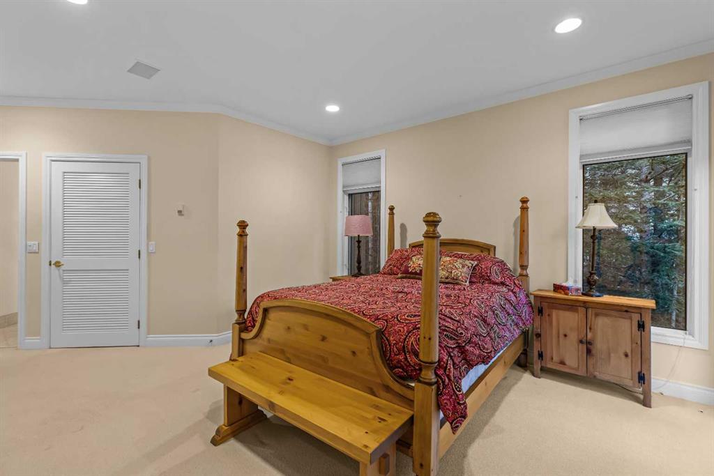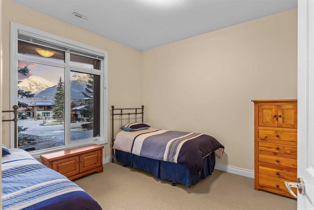 The lower level welcomes family and guests with a spacious family room and three well-appointed bedrooms. Upstairs, an additional guest room—or a comfortable home office—adds flexibility to the 4,341 sq ft floor plan. Timeless mountain-inspired finishes, including a striking Rundle stone fireplace, lend warmth and sophistication throughout.