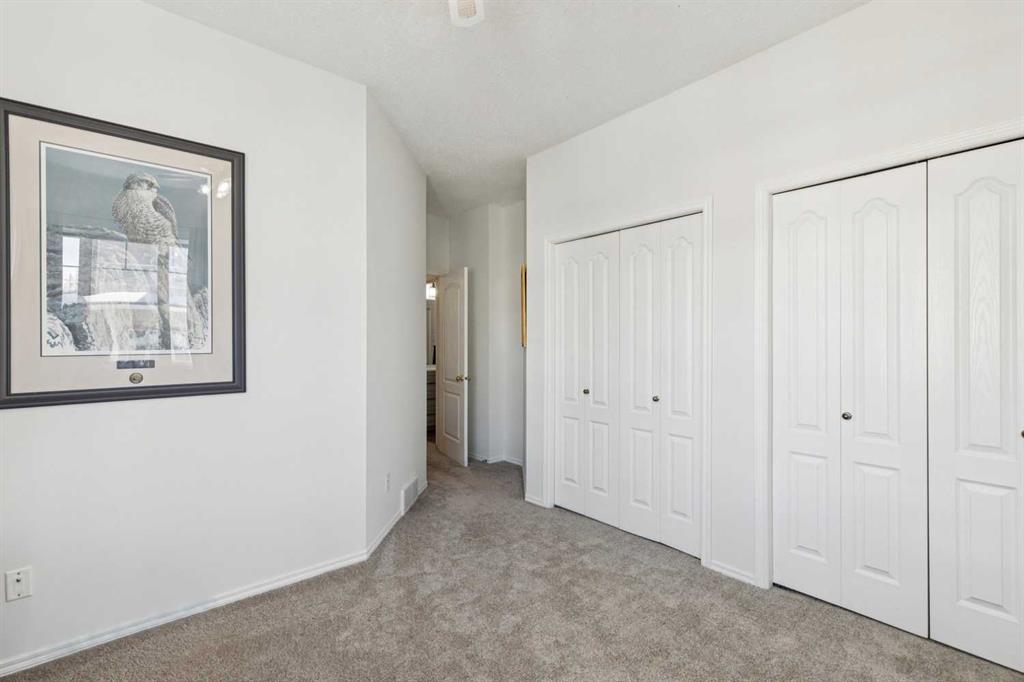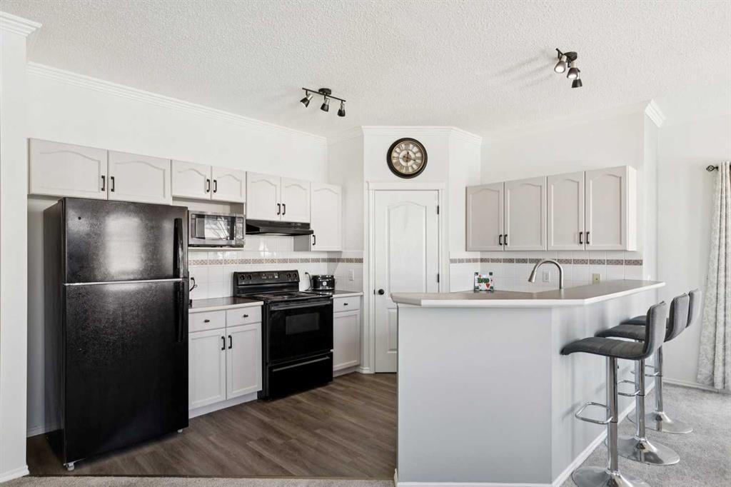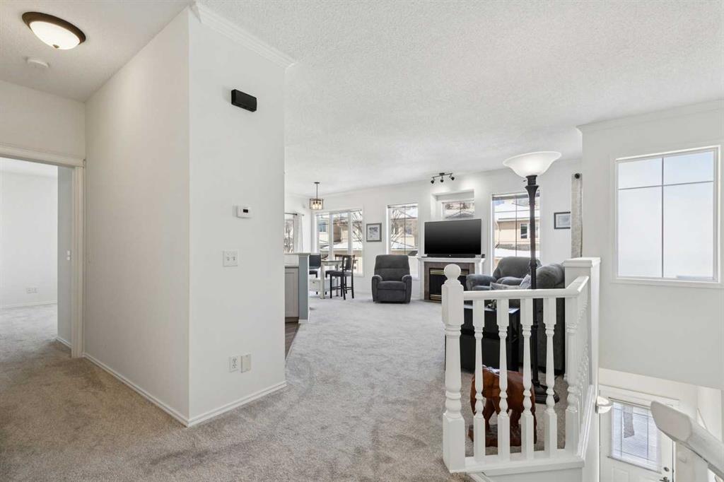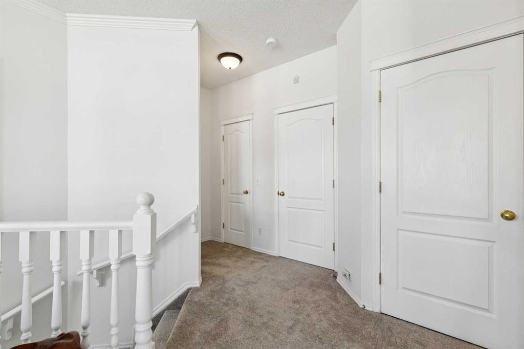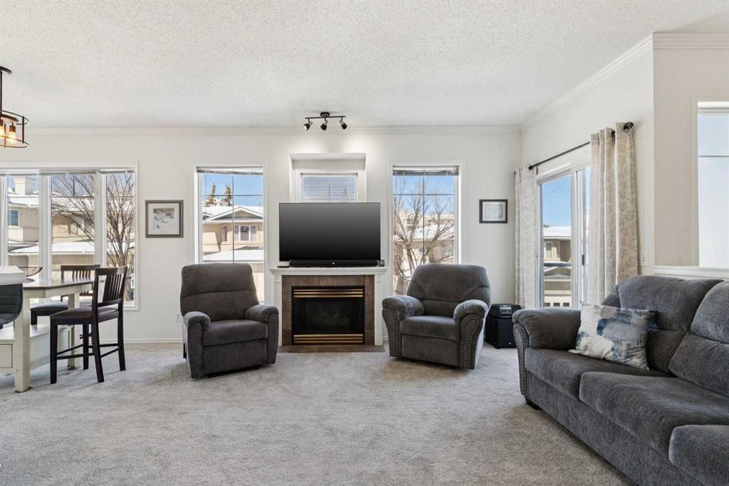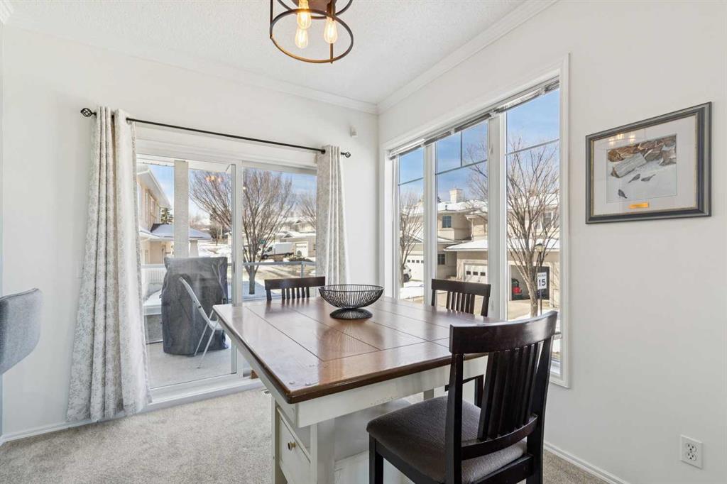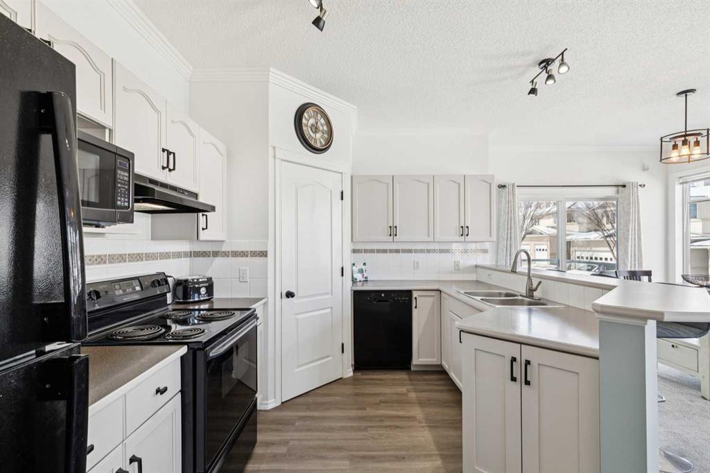 Welcome to 40 Edgeridge Terrace, ideally located in the sought-after Hillsboro complex in Edgemont. This beautifully maintained upper-level bungalow-style townhome offers the perfect balance of natural serenity and urban convenience. Featuring two bedrooms, two bathrooms, and parking for two vehicles – including an oversized single garage and driveway – this home presents an exceptional opportunity to live in a quiet and well-established community. Step inside to discover 9-foot ceilings and a bright open-concept layout that seamlessly connects the kitchen, dining, and living areas. The spacious kitchen offers ample cabinetry, generous preparation space, and a convenient pantry, flowing effortlessly into the large dining area—perfect for hosting family and friends. From here, enjoy direct access to the first of two private balconies, ideal for summer barbecues and outdoor dining. The inviting living room is anchored by a cozy fireplace and highlighted by large windows that flood the space with natural light. A second balcony extends the living space outdoors, offering a peaceful retreat to relax and unwind. Designed with privacy in mind, the bedrooms are thoughtfully positioned on opposite sides of the home. The primary suite features a generous walk-in closet and a private ensuite, creating a comfortable and serene retreat. The second bedroom provides excellent flexibility for guests, a home office, or additional living space. A full four-piece bathroom and a convenient main-level laundry add to the home’s functionality and ease of living. Recent updates enhance both style and peace of mind, including a new hot water tank (2025), carpet and vinyl plank flooring, modern lighting, paint, new toilets, an updated main bathroom vanity and faucets, an updated ensuite counter, and refreshed kitchen hardware. Just steps from your door, enjoy beautifully landscaped grounds, a charming courtyard, and immediate access to the ravine pathway system. With Nose Hill Park, The Hamptons Golf Club, shopping, public transit, and major roadways nearby, this exceptional home offers both tranquility and convenience in one of Calgary’s most desirable northwest communities. Â