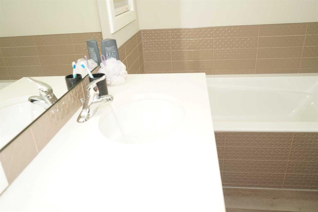 Welcome to this upgraded 2020-built home in the desirable community of Redstone. Recently enhanced with central air conditioning, this property offers a functional layout with modern finishes throughout. The main floor features a bright foyer, versatile flex room, open-concept living space with a gas fireplace, and a kitchen complete with quartz countertops, stainless steel appliances, corner pantry, and a large island. A 3-piece bathroom completes the main level. Upstairs, you will find a spacious bonus room, four bedrooms, a full 5-piece bathroom with dual sinks, and a convenient laundry room. The primary suite includes a large walk-in closet and a 5-piece ensuite with dual vanities, soaker tub, and oversized shower. The fully finished basement adds two well-sized bedrooms, a full bath, kitchen setup, and rec space, designed as an illegal suite for personal use. This home combines comfort, style, and functionality in one of Calgary’s growing communities.