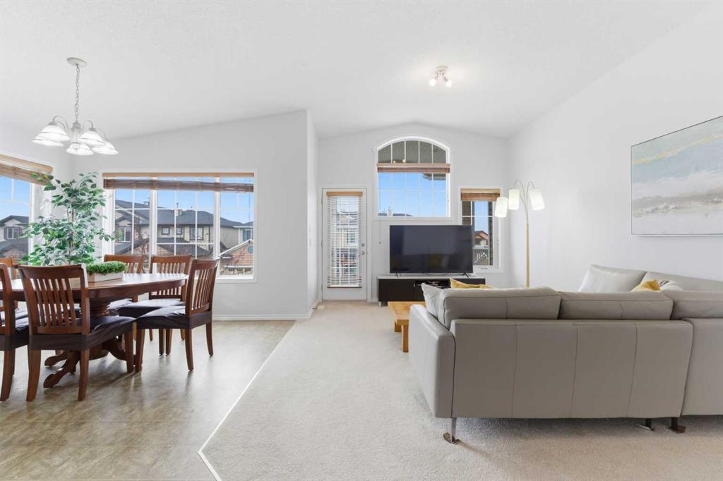 Welcome to this stunning bungalow-style townhouse in the highly sought-after community of Royal Oak, ideally located close to schools, shopping, transit, and all amenities. This bright and inviting home features an open-concept floor plan with vaulted ceilings and large windows throughout, creating an airy, elevated living space with no one above you. The spacious living and dining area leads to a private, generously sized patio with sunny south and southwest exposure. The well-appointed kitchen offers ample cabinetry, a center island, newer Whirlpool appliances (just 2 years old), a corner pantry, plus an additional second pantry for exceptional storage. This home includes: 2 bedrooms, including a king-sized primary retreat, second bedroom with walk-in closet, full bathroom, in-suite laundry, and rough in for fireplace. Additional features: Corner unit with extra windows for abundant natural light, single attached garage, plenty of visitor parking, low condo fees and common greenspace directly behind the unit. Enjoy the convenience of walking distance to schools, shopping, and the new YMCA, with quick access to transit including a direct bus to the Tuscany LRT station. Just 15 minutes to downtown and easy access west to the mountains. This is elevated living at its finest—don’t miss this exceptional opportunity.