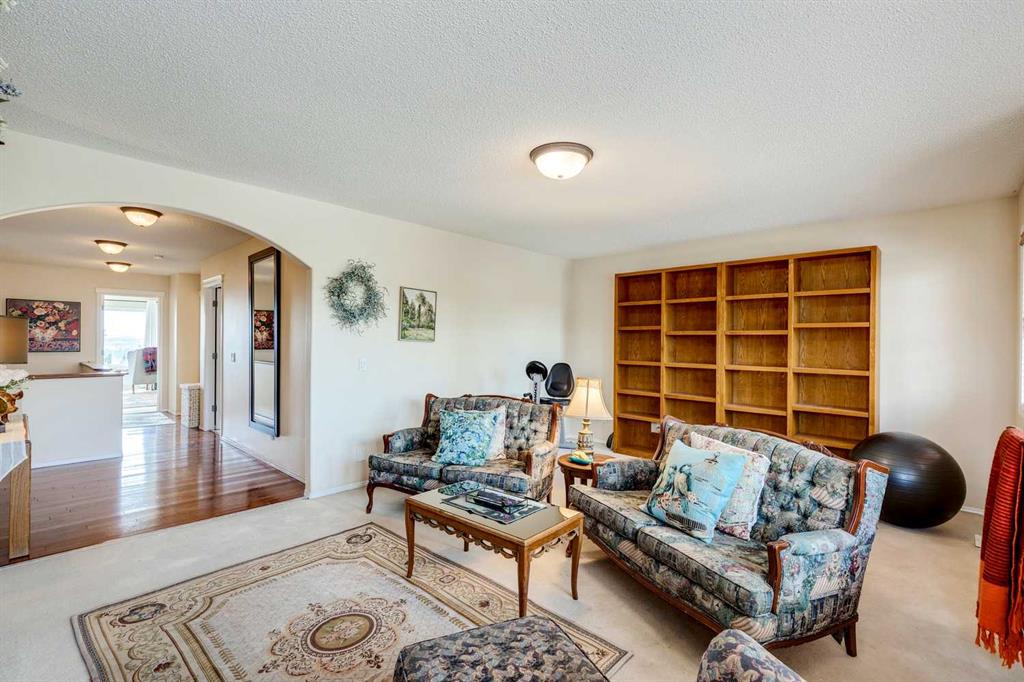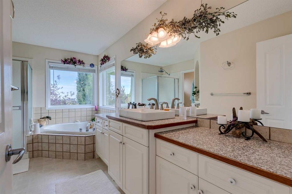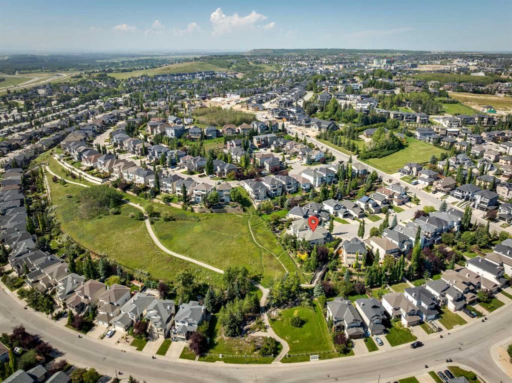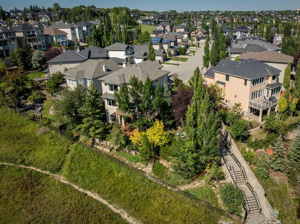 One owner, custom built Jayman home on a one-of-a-kind, park-like, overlooking the nature reserve. Views from east to west with a quiet cul-de-sac location at the front and your own private oasis at the back. This stunning walk-out two storey home has a total of 3,800 sqft of living space with a total of 6 bedrooms making it a great family home. From the moment you step into the home, you’ll see why this property is so special! The full-size south exposure windows in the living room and across the back of the home bring in an abundance of natural light and amazing views. The living room is highlighted with a gas fireplace, surrounded by tile, topped with a wood mantle. Spacious kitchen with a large center island, 3-stool raised breakfast bar, plus a full-size eating nook which is surrounded by views out of all 3 windows and sliding doors to the deck (stairway leading down to the yard). The deck was extended to incorporate your own private outdoor dining space amongst the mature trees. Enjoy a sunrise coffee, afternoon happy hour or sunset dinner! A unique feature is the “reverse” stairway (finished in hardwood) opening directly into the kitchen and leading up to the 2nd floor – the first thing you’ll see every morning is the spectacular view. The main floor, with custom hardwood flooring throughout, also features the formal dining room, office/den, mudroom/laundry which has direct access from the oversized double garage. The upper level floor plan is so well laid out with a huge bonus room for the kids at the front, 3 spacious bedrooms in the middle, 4 piece bathroom, and a wonderful primary suite and retreat with views that will never get old. Spa-style ensuite with corner soaker tub and separate shower. The lower walk-out level is fully developed with 2 bedrooms (egress windows), 4 piece bathroom, storage and rec room with access outside to a covered deck. The beautiful fully fenced lot has many mature trees, shrubs, perennials, wood retaining wall, firepit and terraced landscaping. Open the gate and have direct access to the pathways in the park – great for people and dog walking too. Excellent location, just minutes to downtown, West Hills Rec Centre, shopping, Costco restaurants or head west to the mountains on Stoney Trail. Original owners have loved their home and now you can as well. Truly an investment in both lifestyle and real estate!