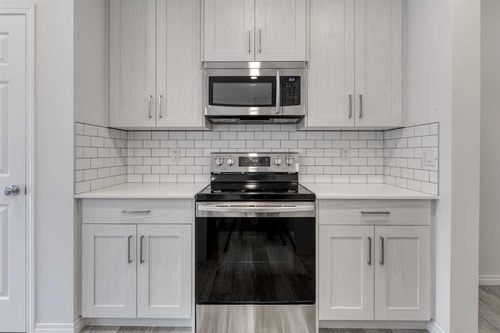 The stylish kitchen is finished with quartz countertops throughout, modern cabinetry, and ample workspace, making it as practical as it is beautiful. With no carpet anywhere in the home, maintenance is effortless, while the new vinyl flooring on the second level adds durability, warmth, and a cohesive modern aesthetic.