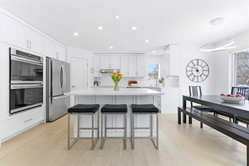 Rare Offering. The perfect home for the whole family. Offering over 2600 sq ft of beautifully curated living space, this property blends comfort, elegance, and an unbeatable location—rarely available in Tuscany. The whole house has been redesigned and renovated. The main floor fully renovated in 2021 features durable waterproof engineered hardwood throughout, a versatile front flex room ideal for a home office or formal dining, and a stunning chef’s kitchen complete with dual wall ovens, a six-burner stove, custom cabinetry, quartz countertops, and a large island with storage on both sides. The kitchen flows seamlessly into a sophisticated living room with a statement gas fireplace and an expansive dining area overlooking the backyard. A stylish powder room, custom mudroom, and laundry complete the main level. Upstairs, the stylish glass-railed staircase leads to a bright bonus room filled with natural light and views of the greenspace and playground. The upper floor also offers two spacious bedrooms, a renovated main bath, and a luxurious primary retreat featuring a brand new ensuite (April 2026) with heated floors, a glass shower with body jets, and a walk-in closet. The fully developed lower level (permitted in 2013) is designed for family living, offering a large recreation space perfect for movie nights, games, or play, along with a fourth bedroom and full bathroom. Extensive upgrades include new shingles (2017), hot water tanks (2023), A/C (2022), new carpet (2023/2024), and custom Hunter Douglas blinds upstairs. Step outside to your dream backyard—a massive northwest-facing pie lot filled with mature trees and perennials, complete with a deck, lower patio, side dog run, and shed—perfect for relaxing or entertaining. Situated on a quiet cul-de-sac, this dream home fronts onto a private greenspace and playground and is within walking distance to top-rated schools. Enjoy exclusive access to the Tuscany Club with its splash park, tennis courts, fitness facilities, and year-round events. Walk to nearby amenities including Sobeys and Starbucks, with quick access to the LRT and just 15 minutes to downtown. Surrounded by parks and pathways, this exceptional home offers the perfect blend of luxury, functionality, and lifestyle in one of Northwest Calgary’s most sought-after communities.