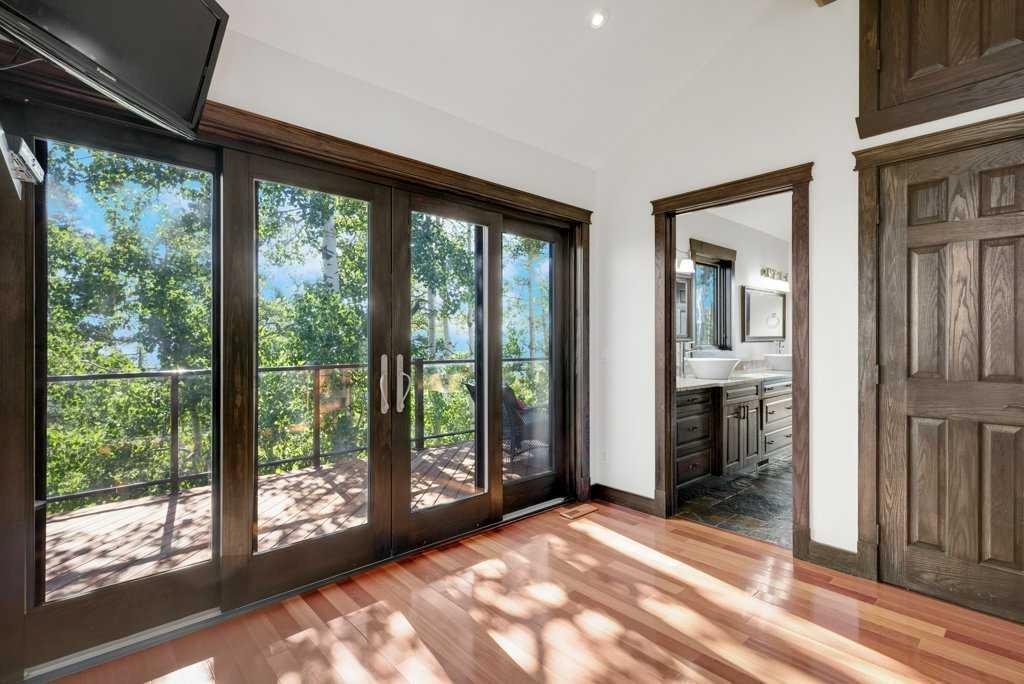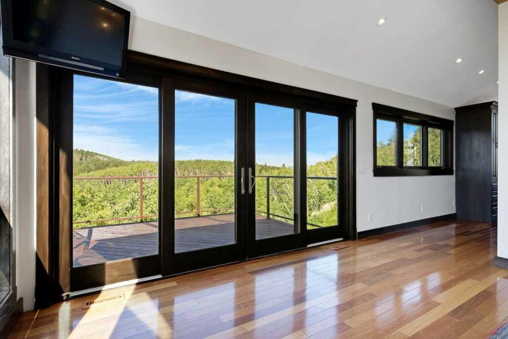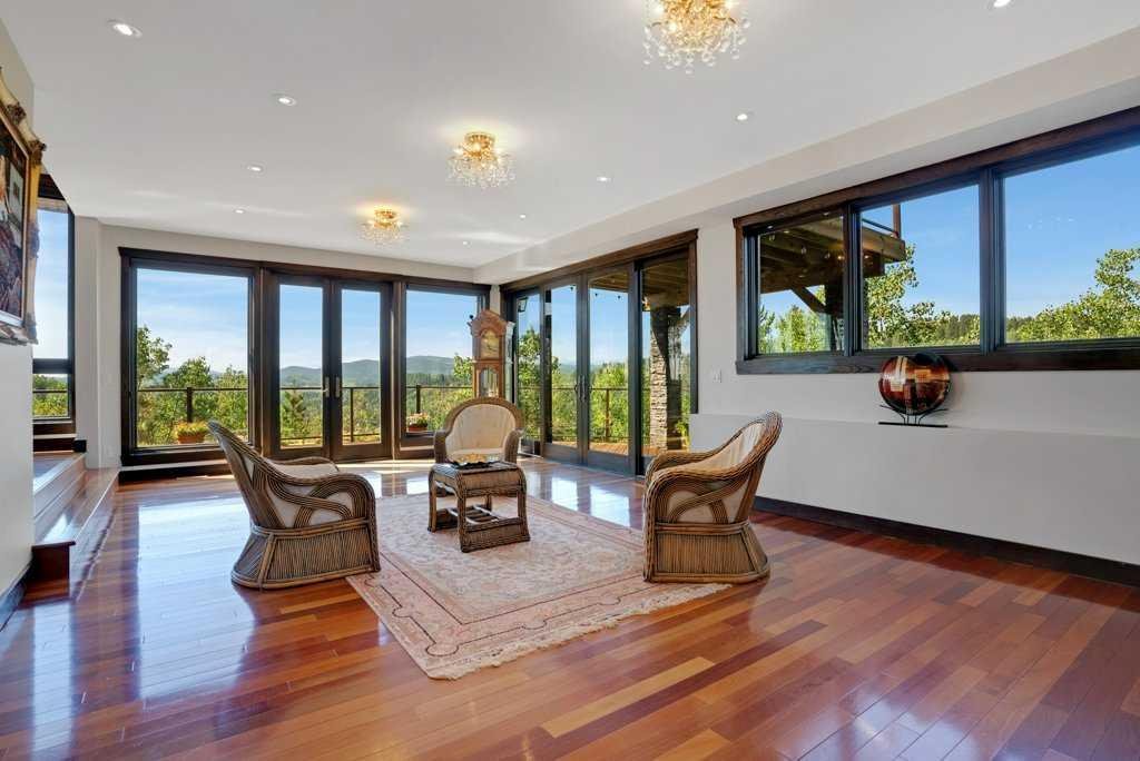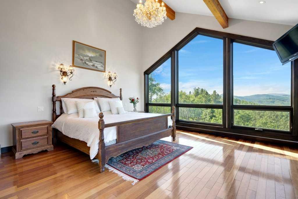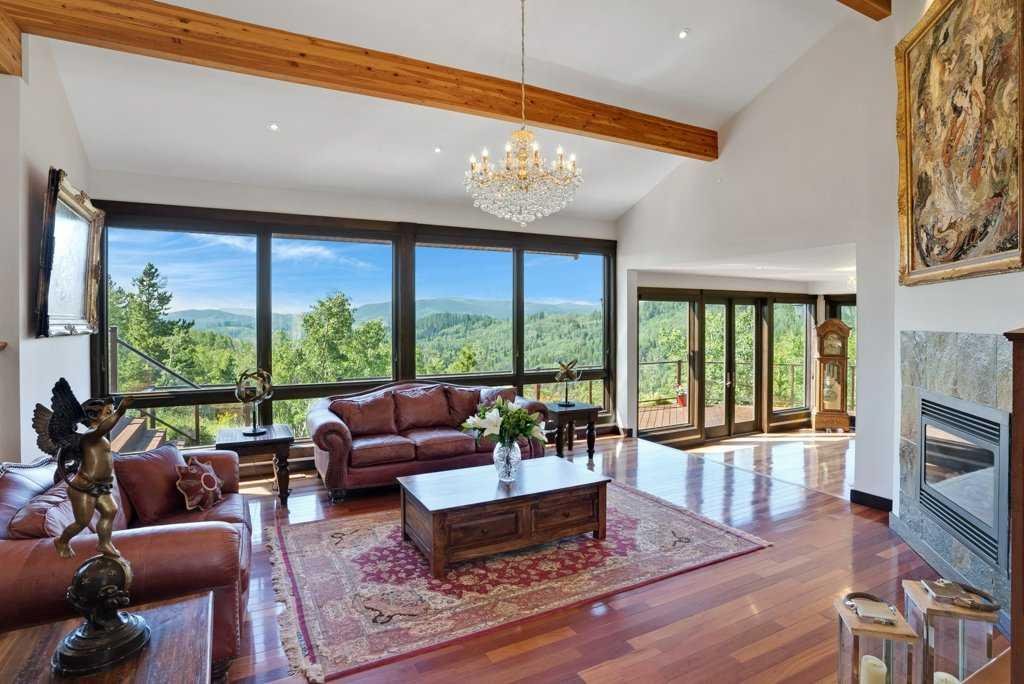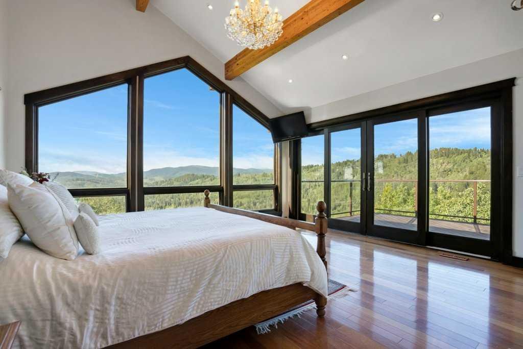 The Bragg Creek Trifecta: many properties have one of these three coveted things, but very few have it all! First, a beautiful home. Redesigned by award winning, internationally acclaimed designer, John Haddon, the 3968 sq. ft. of living space was taken down to the studs and rebuilt, inside and out, with the finest materials and craftsmanship. Second, incredible views of the mountains and forest. Given the seclusion and privacy, not a single curtain on any of the 55 windows impedes the breathtaking views afforded from every room. The third and most rare attribute of all, the thing that makes this “the hat trick”, is direct access to Kananaskis Country! That’s right, there is a private gate that connects to one of the most famous, beautiful, backcountry areas in Alberta, where you can hike or bike or ride for days. This home, sitting on 23 acres, is part of a small exclusive development of properties which span a ridge and directly border K-Country – the biggest backyard of all! Entering the home, the first thing you notice is the airy interior space, with cathedral ceilings and huge windows. The slate foyer gives way to Brazilian cherry hardwood floors, flowing throughout the balance of the home. Resisting the urge to immediately rush to the windows and deck system, to the left is the dining room and kitchen with quartz countertops and high-end appliances. Further on are two high-ceiling bedrooms, each with their own access to the wrap-around deck and connected by a large Jack and Jill 5-piece en suite. The upstairs is entirely devoted to the primary suite, which is unparalleled, with the huge windows and private deck all giving a new perspective to the vistas beyond. The 6-piece bathroom and walk-in closet complete this lofty sanctuary. The walk out lower level features a bar, exercise room, office area, expansive rec room with gas fireplace, 3-piece bath, and French doors to the walk-out patio and huge deck beyond. The property is completed by an insulated and drywalled triple car garage. You’re intrigued, I can tell, and further investigation is needed. Explore using our streaming video and 3-D tour; and then take the next step and make the Trifecta your own.